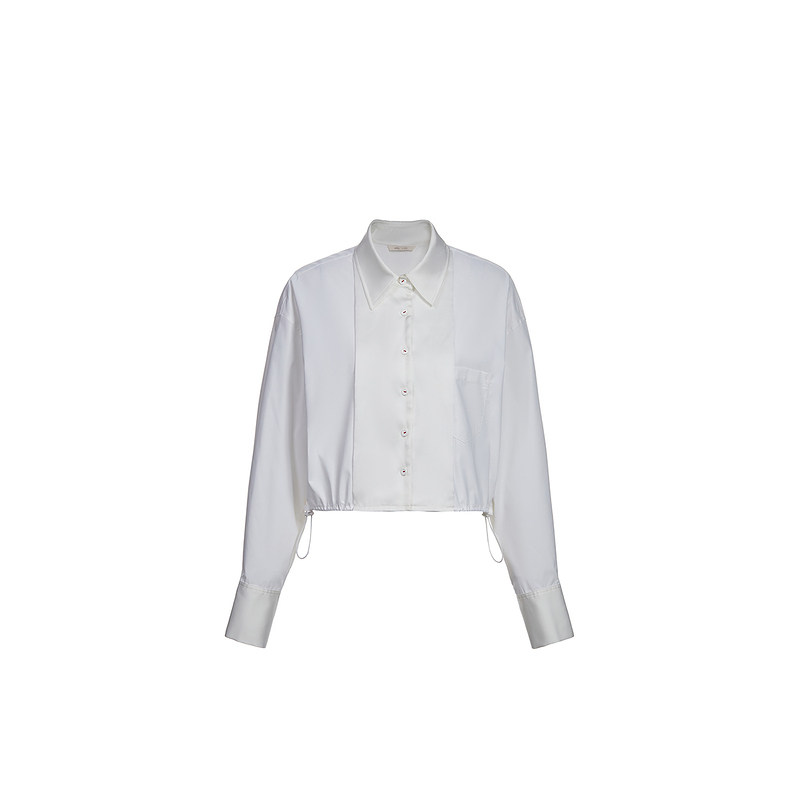 箱型宽松正肩衬衫女 ochirly欧时力2024新款春装通勤饰唛设计感