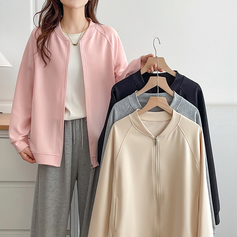 秋季新款大码运动外套女200斤胖mm显瘦削肩纯色休闲开衫遮肉卫衣