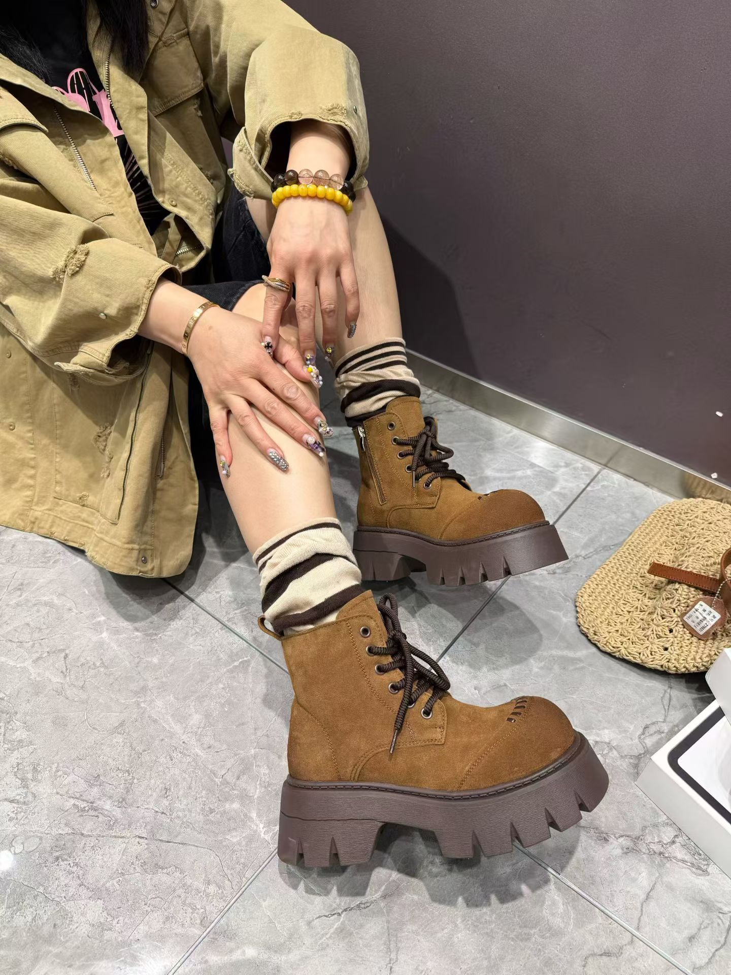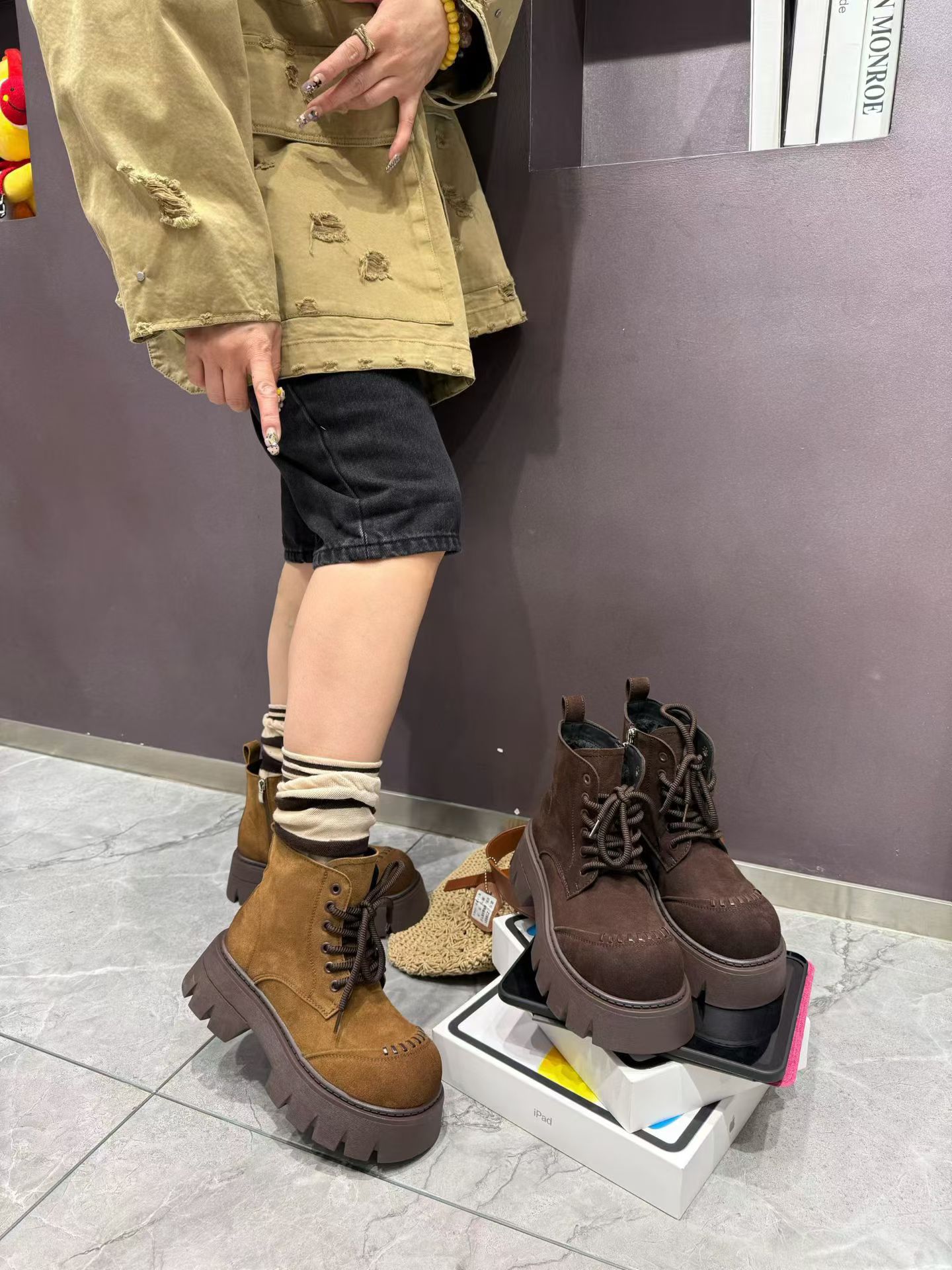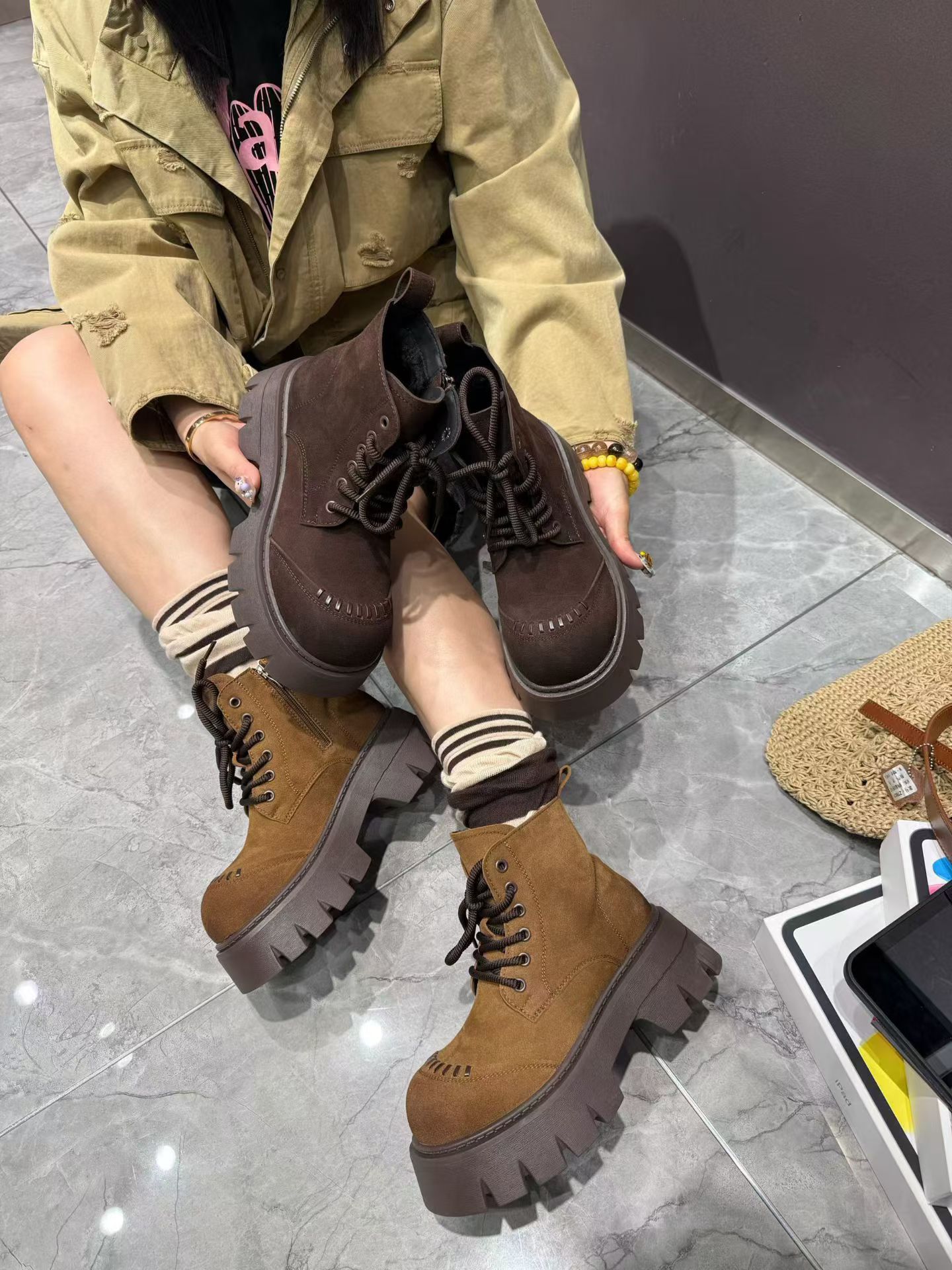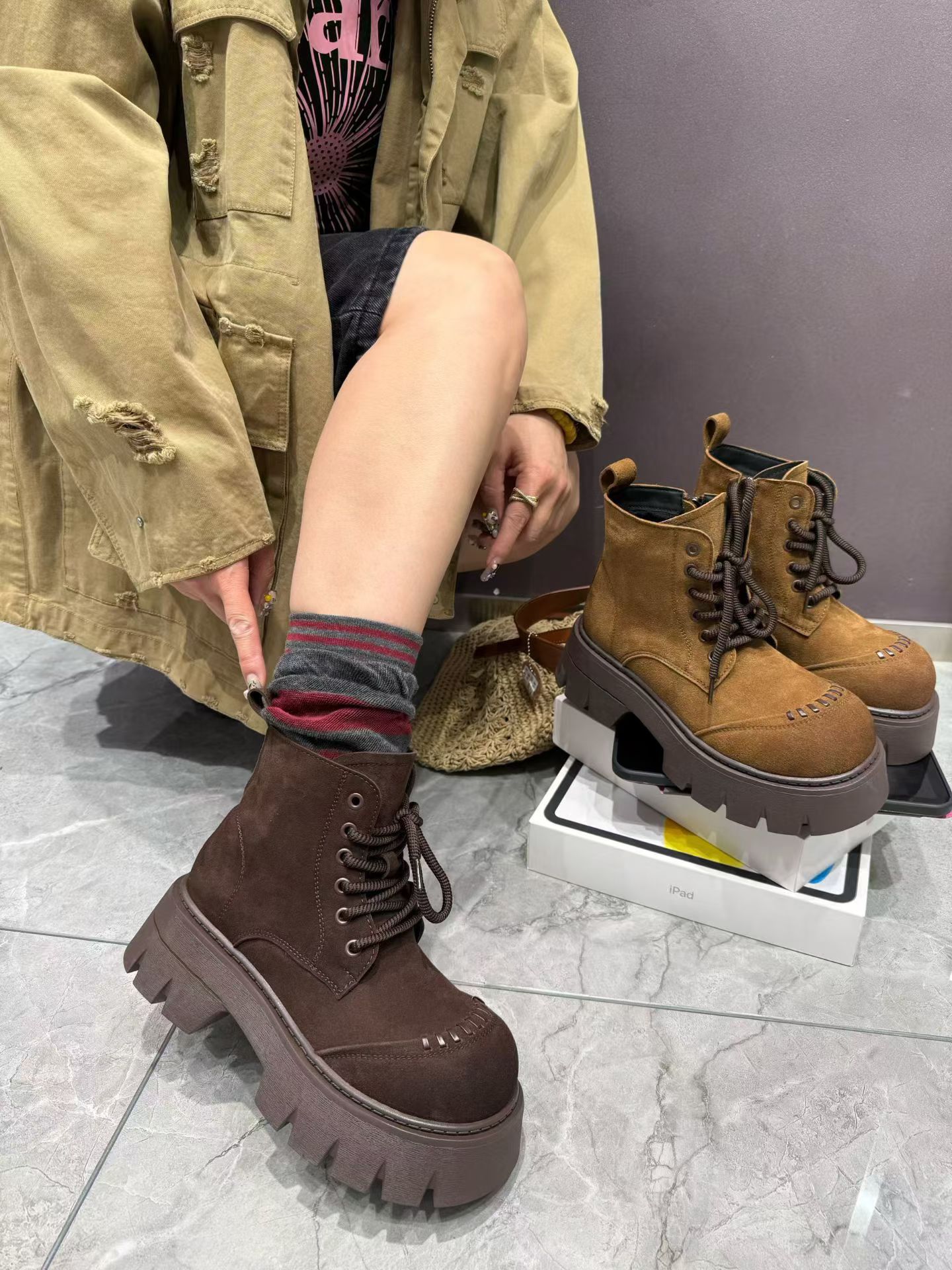 2025新款真皮厚底马丁靴女冬季加绒保暖棉鞋磨砂皮英伦风短靴子
