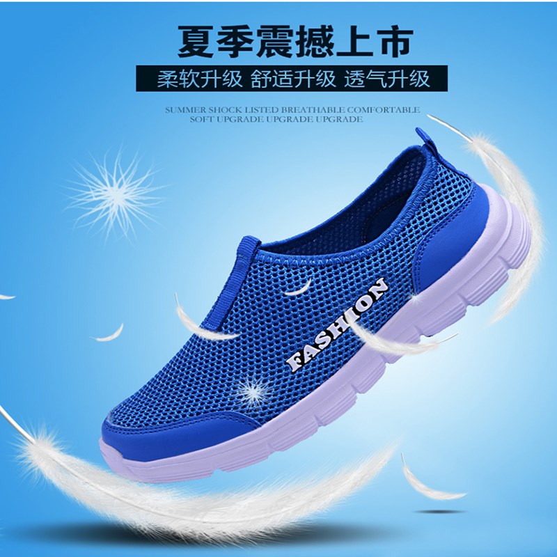 大码男鞋夏季镂空透气网布鞋男厚底防滑轻便休闲运动鞋懒人鞋