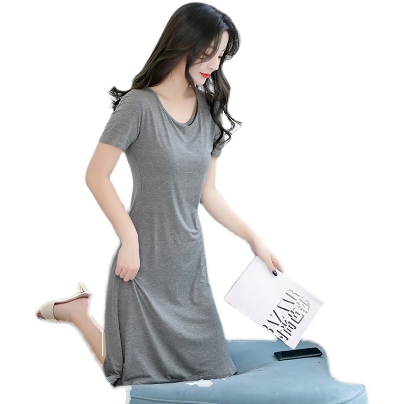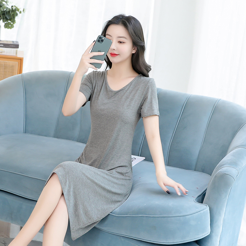 家居服大码莫代尔纯色睡裙中长裙