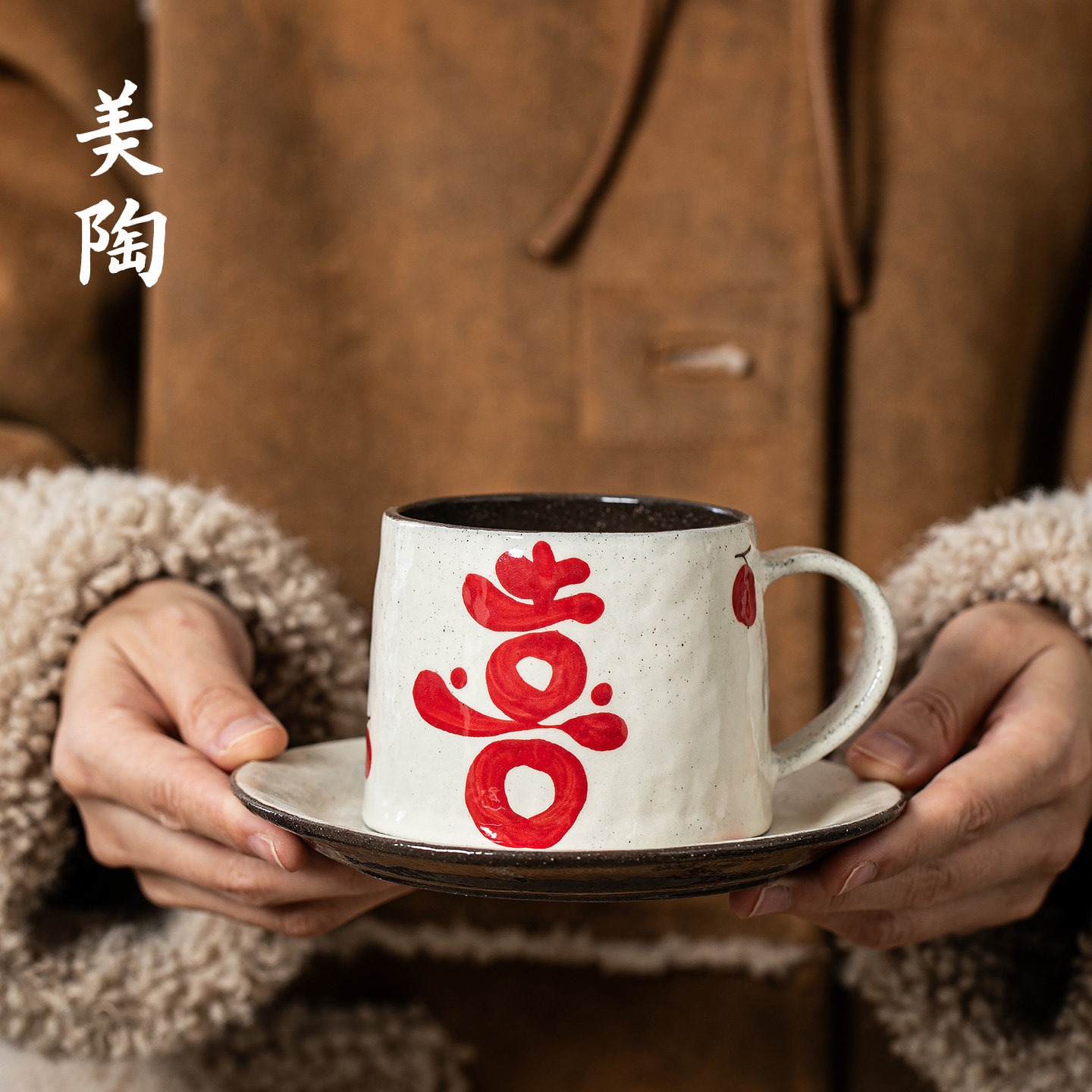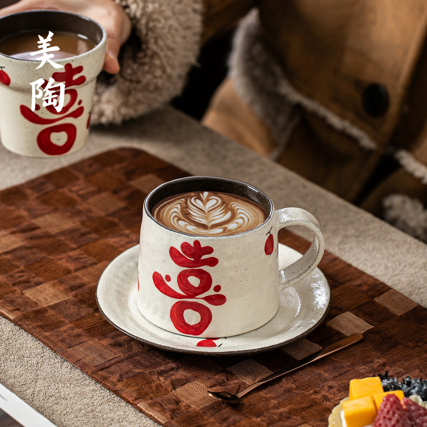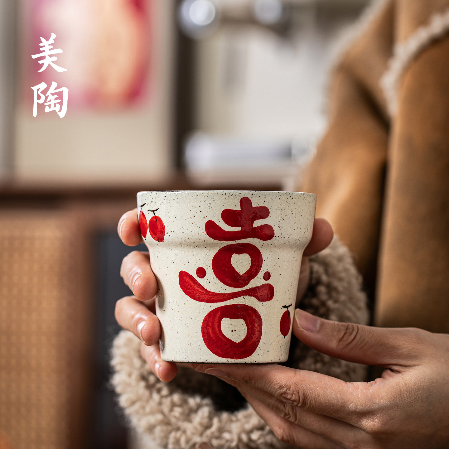 景德镇陶瓷手绘喜字咖啡杯手握杯