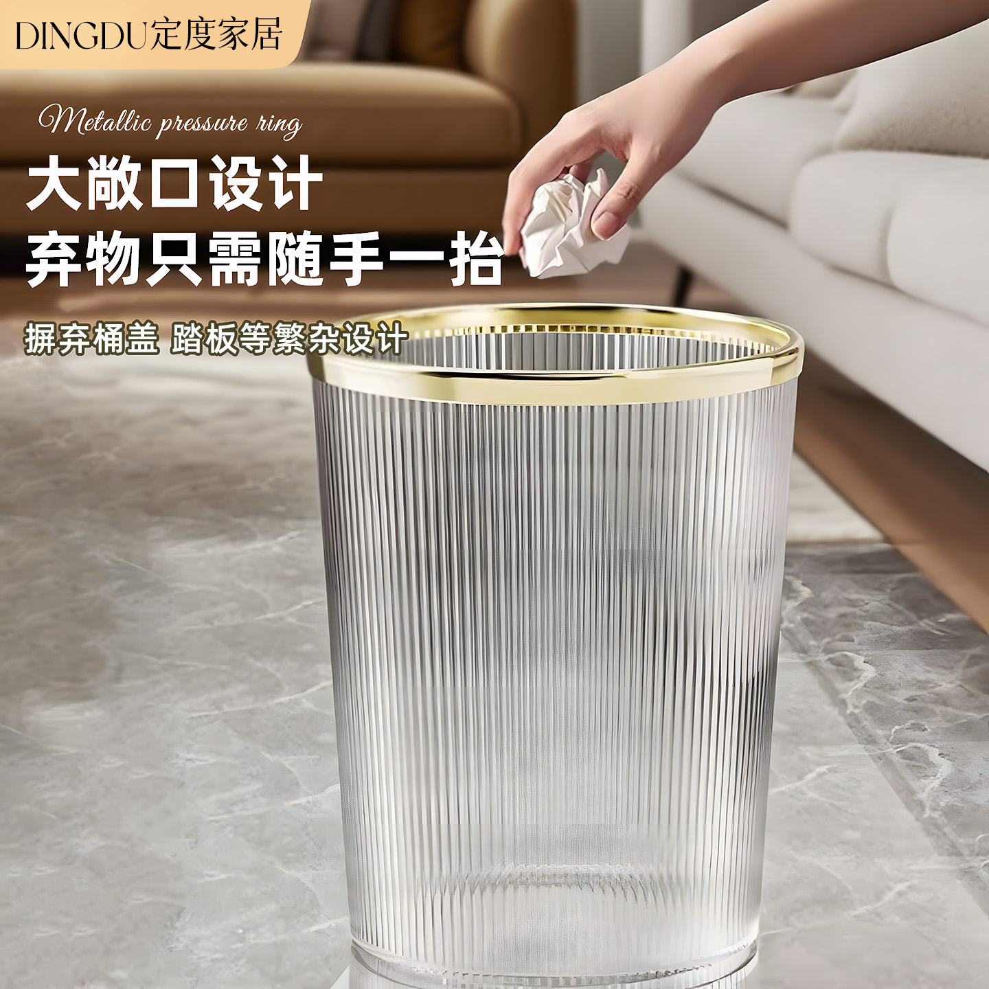 现代简约轻奢透明垃圾桶家用客厅超大容量厨房卫生间带压圈垃圾篓