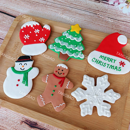 圣诞节圣诞树姜饼人雪人手套帽子雪花翻糖饼干节日礼物