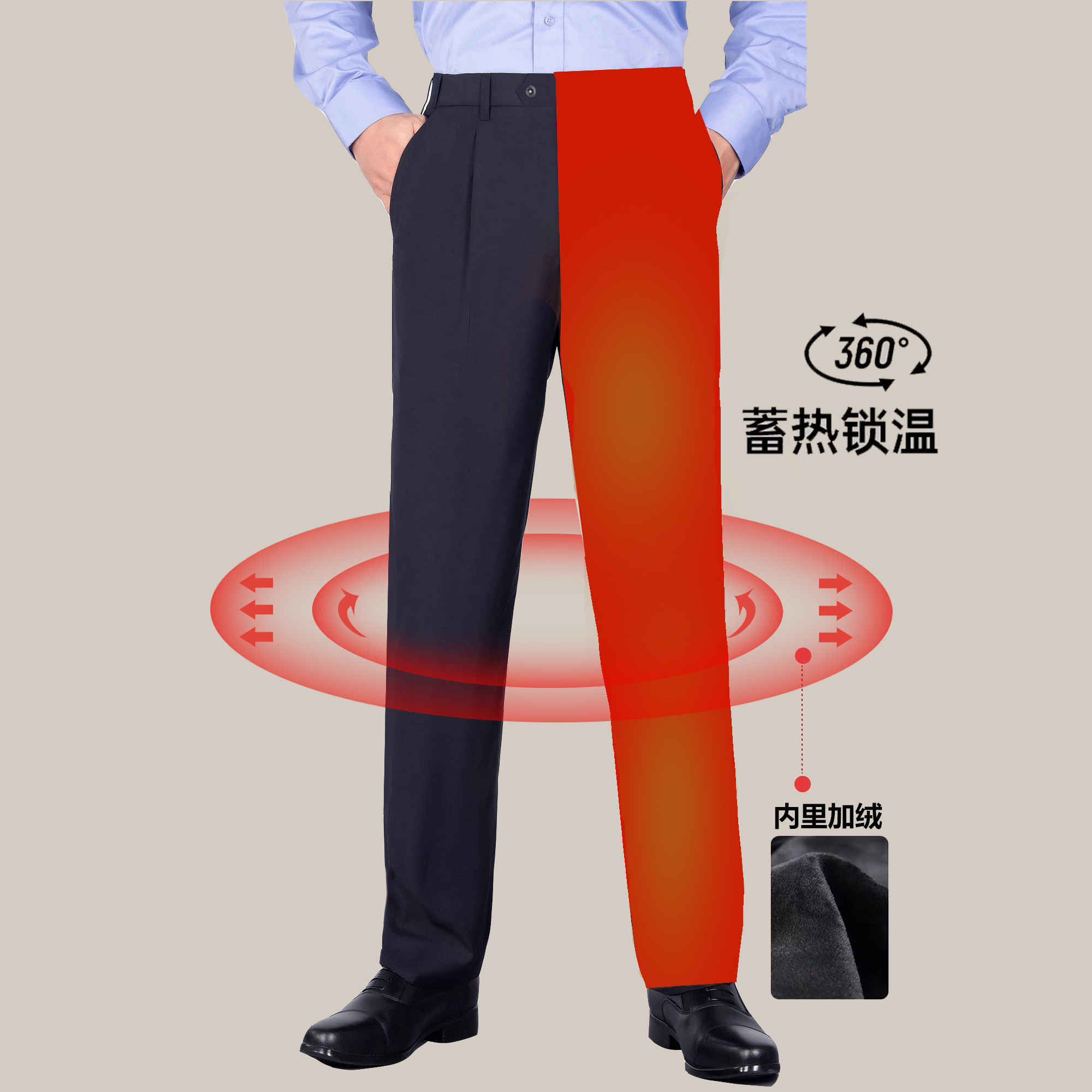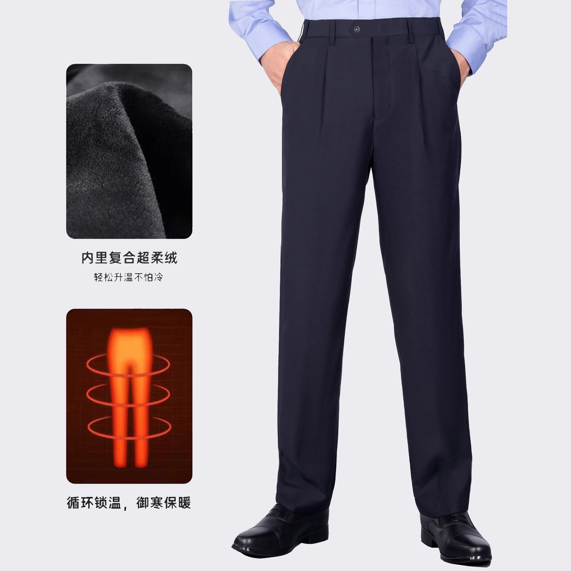 加绒通勤裤男女新款藏青色弹力直筒垂感耐磨长裤加厚保暖男士西裤