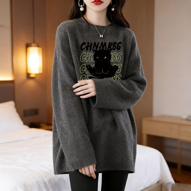 大码韩系宽松中长款长袖t恤女装