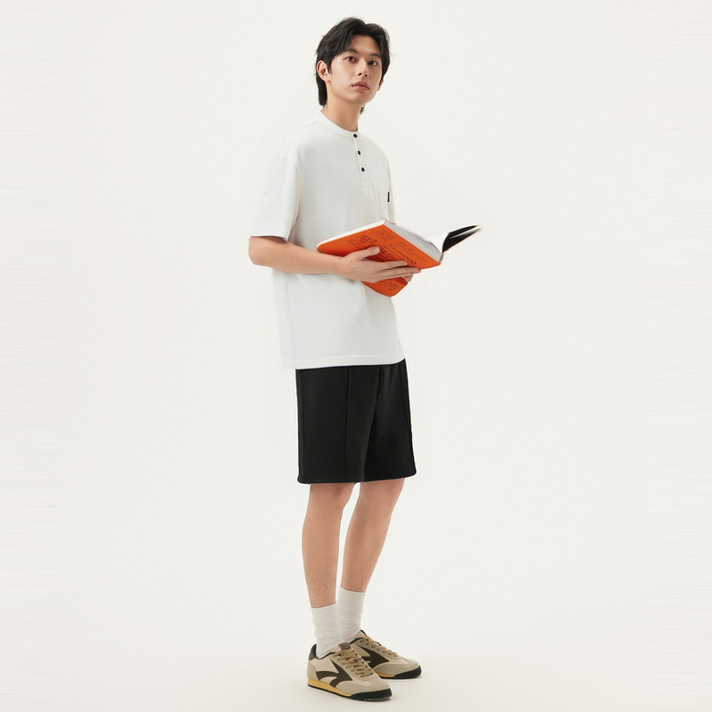 gxg.jeans男装 白色基础简约宽松亨利领短袖t恤男生 25夏新品