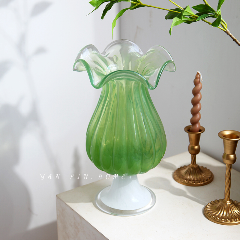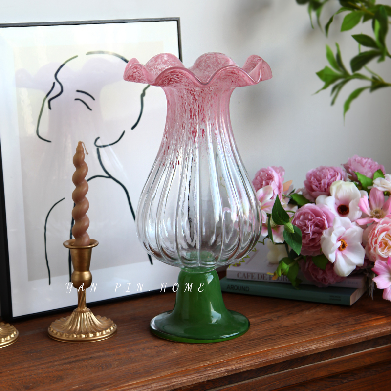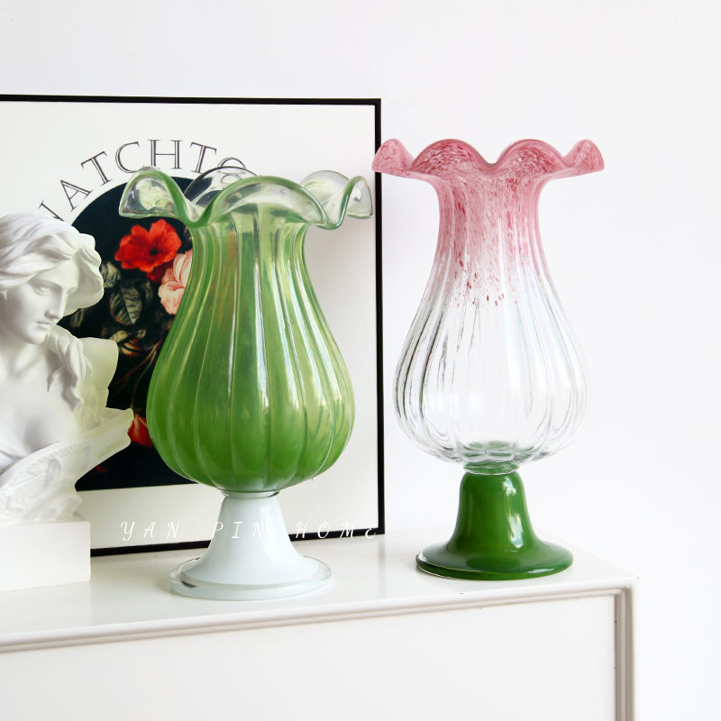 复古中古风灯花瓶高脚玻璃花器客厅电视柜N餐桌欧式琉璃装饰摆饰