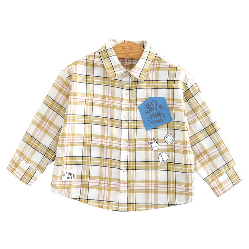 童泰春装男宝宝纯棉长袖格子衬衣男童翻领薄外套男孩百搭衬衫时尚