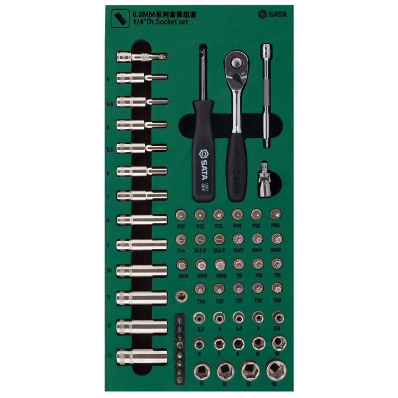 世达五金SATA工具托组套6.3MM系列套筒扳手63件维修组合套装09901