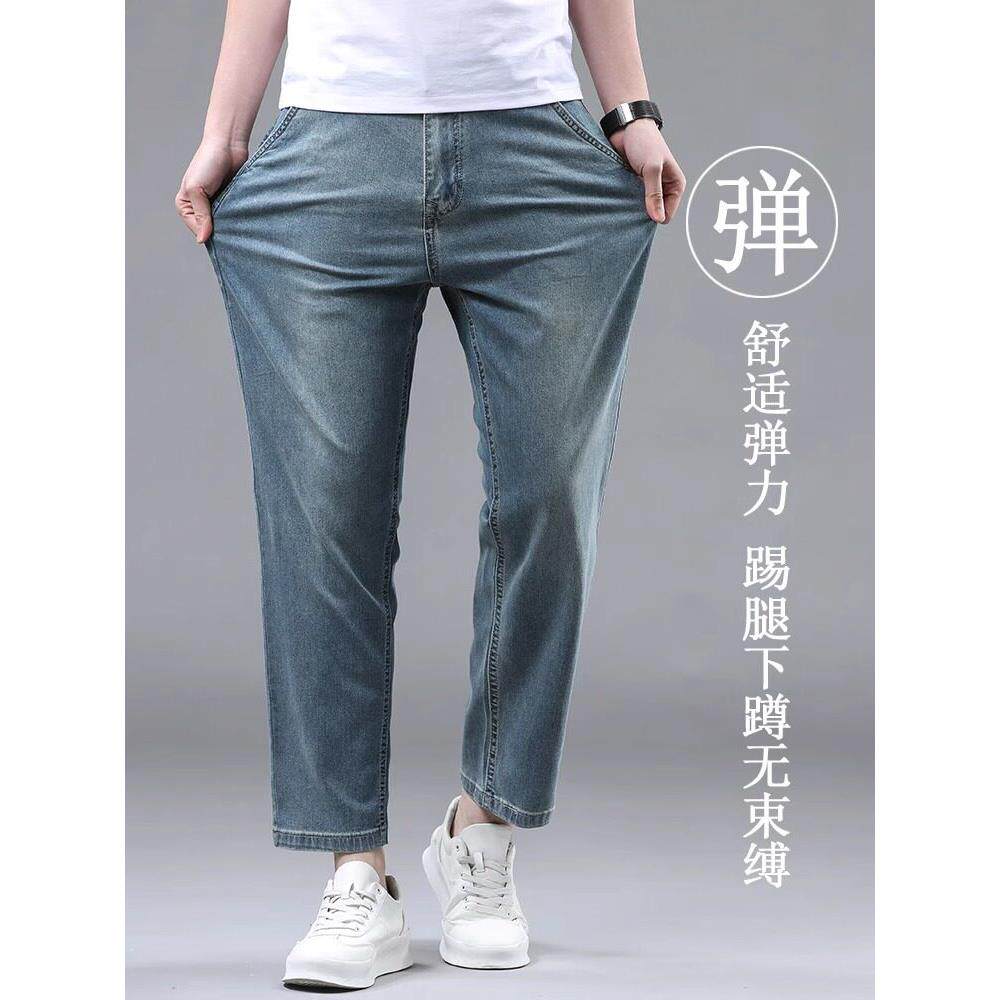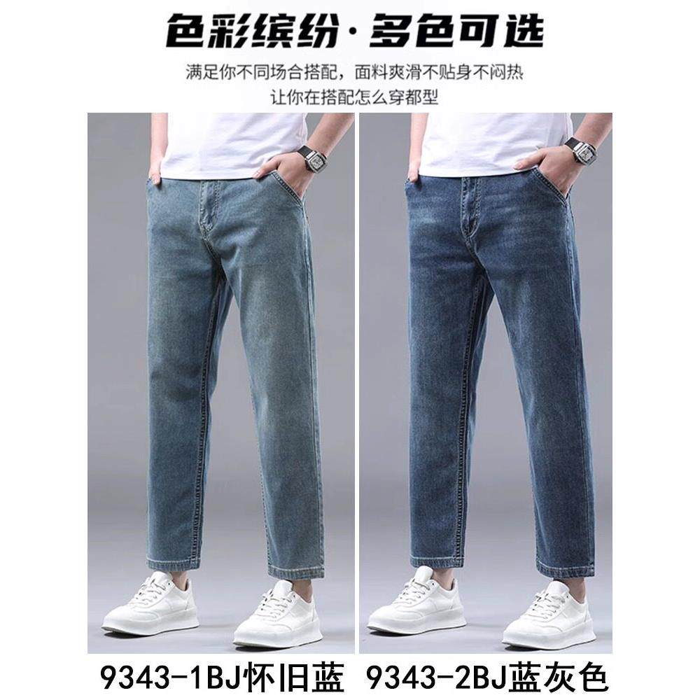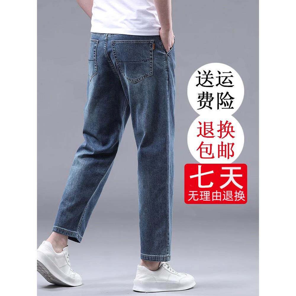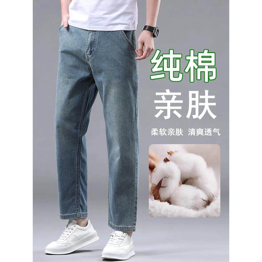 LEEKODY夏季薄款小个子九分牛仔裤男士宽松直筒弹力休闲百搭9分裤