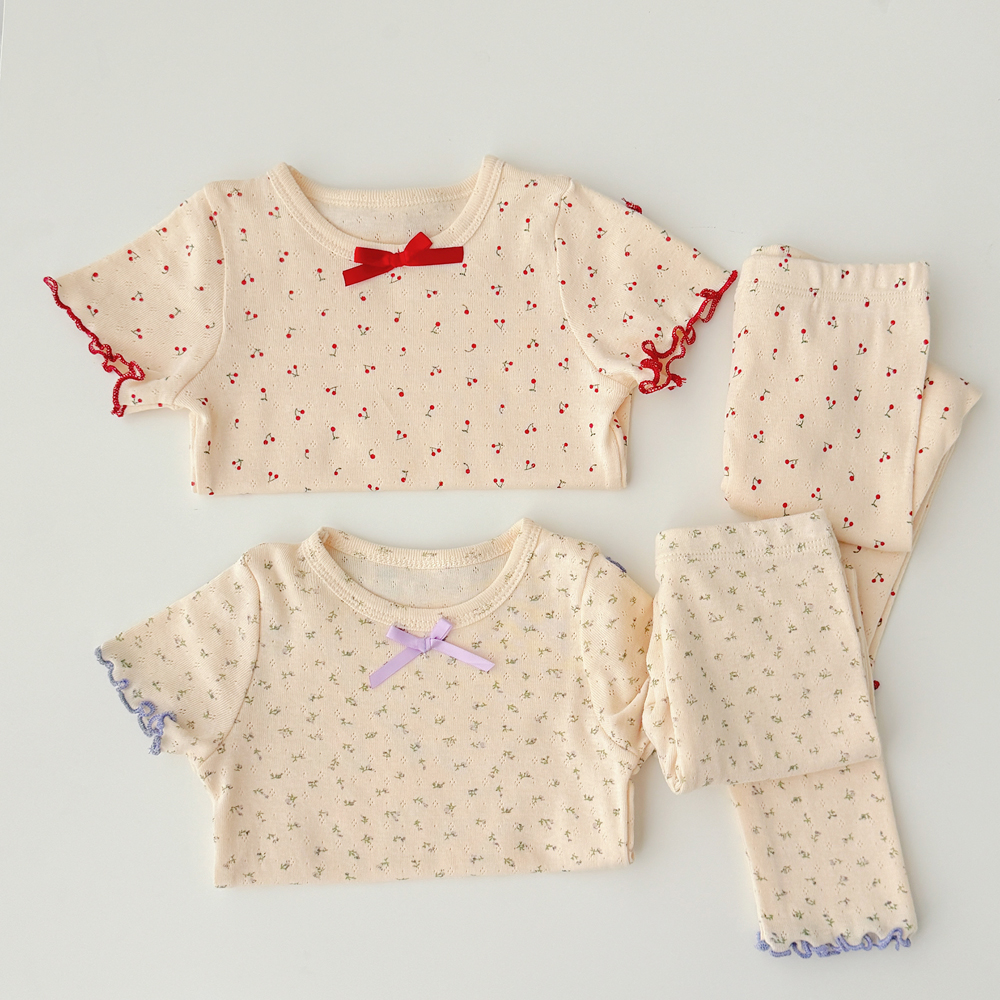 丹麦风儿童家居服套装夏季新款纯棉透气中小女童宝宝短袖长裤睡衣