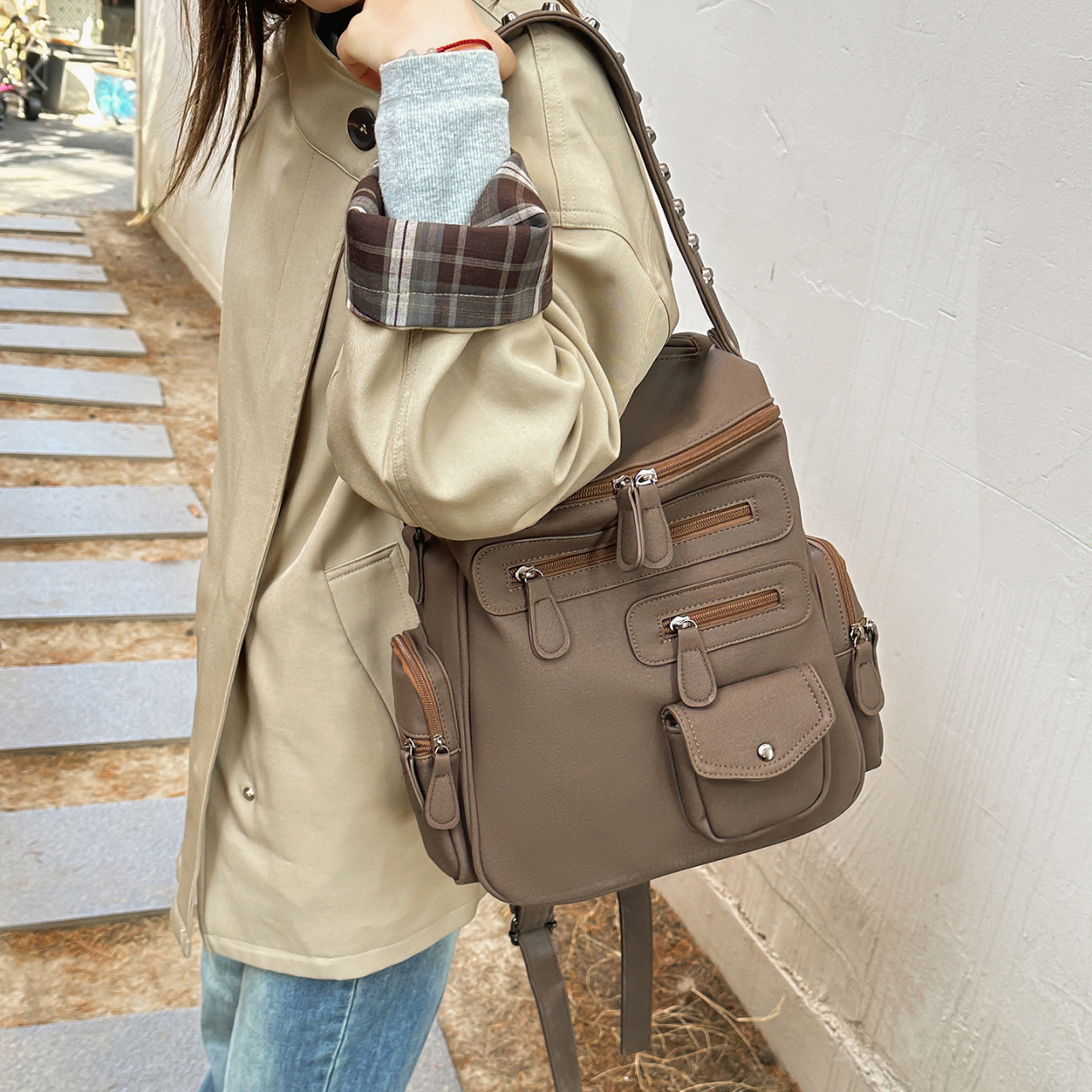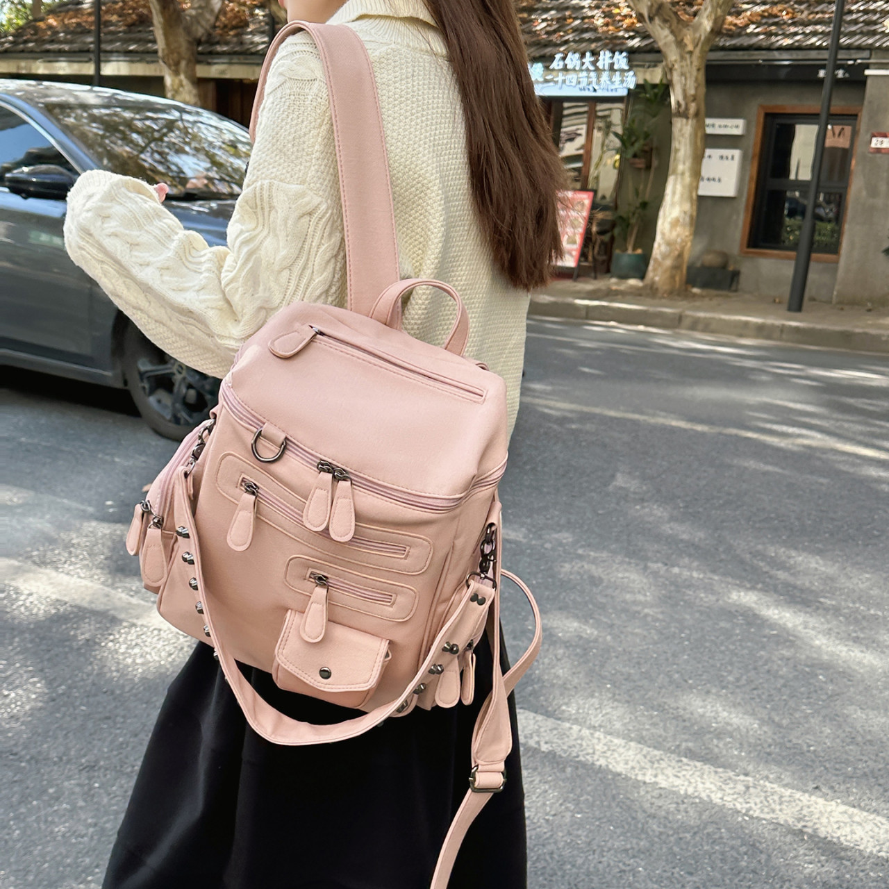 设计感铆钉机车双肩包质感皮质百搭大容量通勤搭配