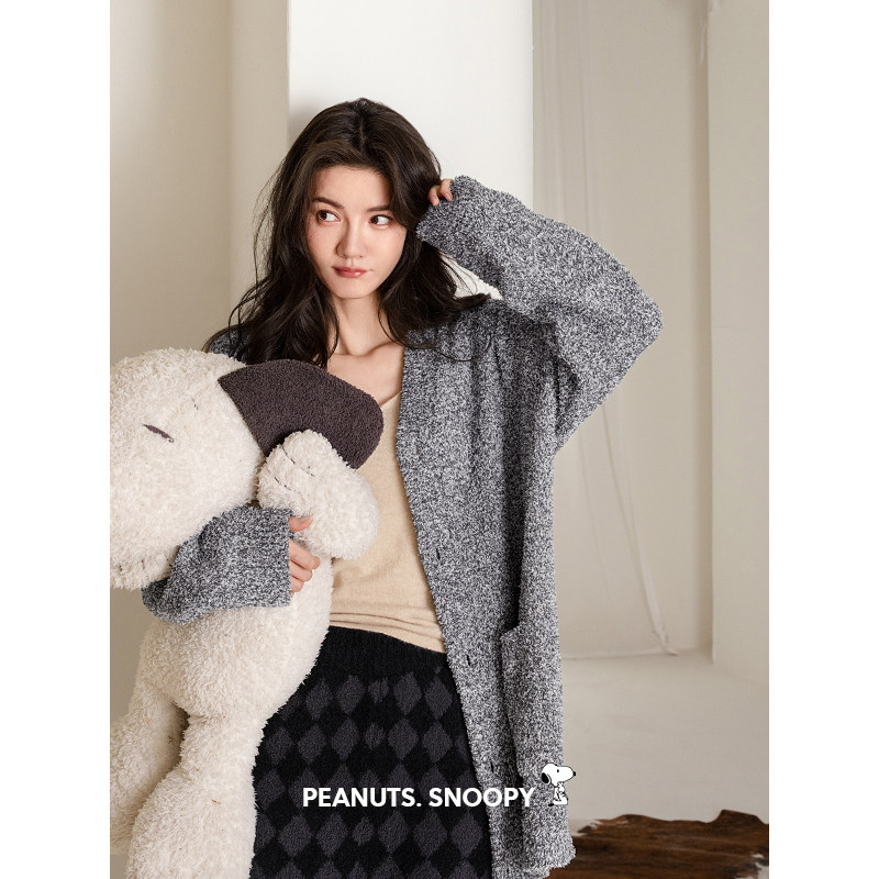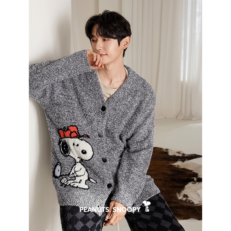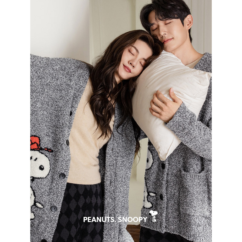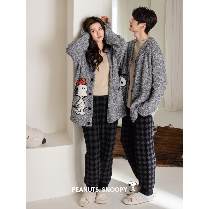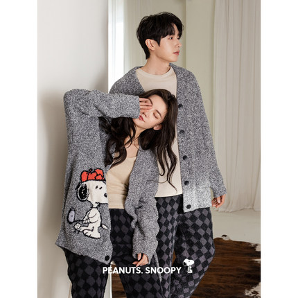 贝妍史努比珊瑚绒情侣睡衣女秋冬慵懒宽松半边绒家居服男大码套装