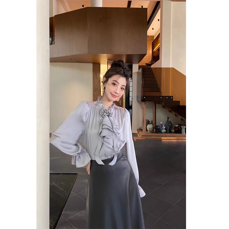 法式雪纺长袖衬衫女设计感气质韩系百搭上衣新款