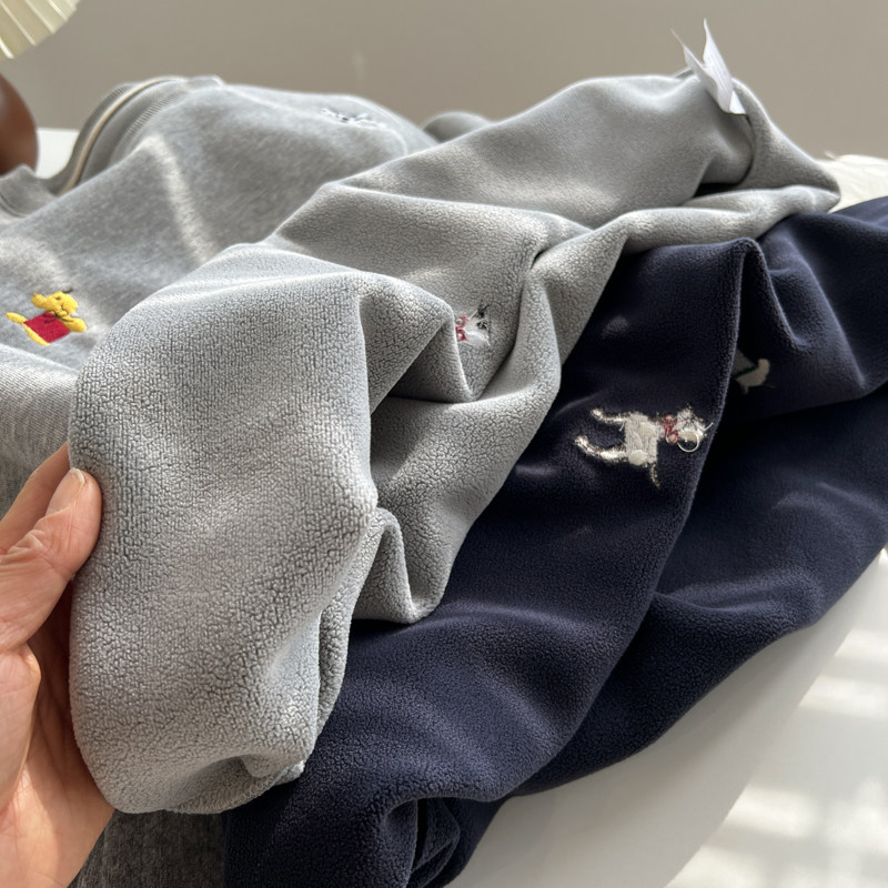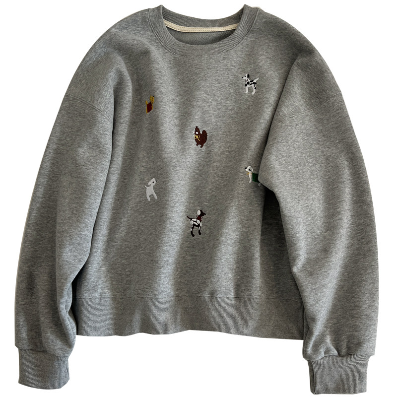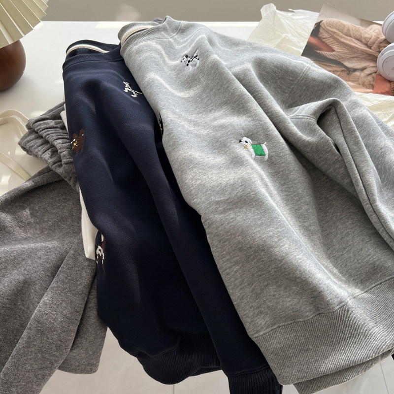 韩版卡通刺绣可爱减龄圆领套头卫衣女加绒加厚宽松外套秋冬新款潮