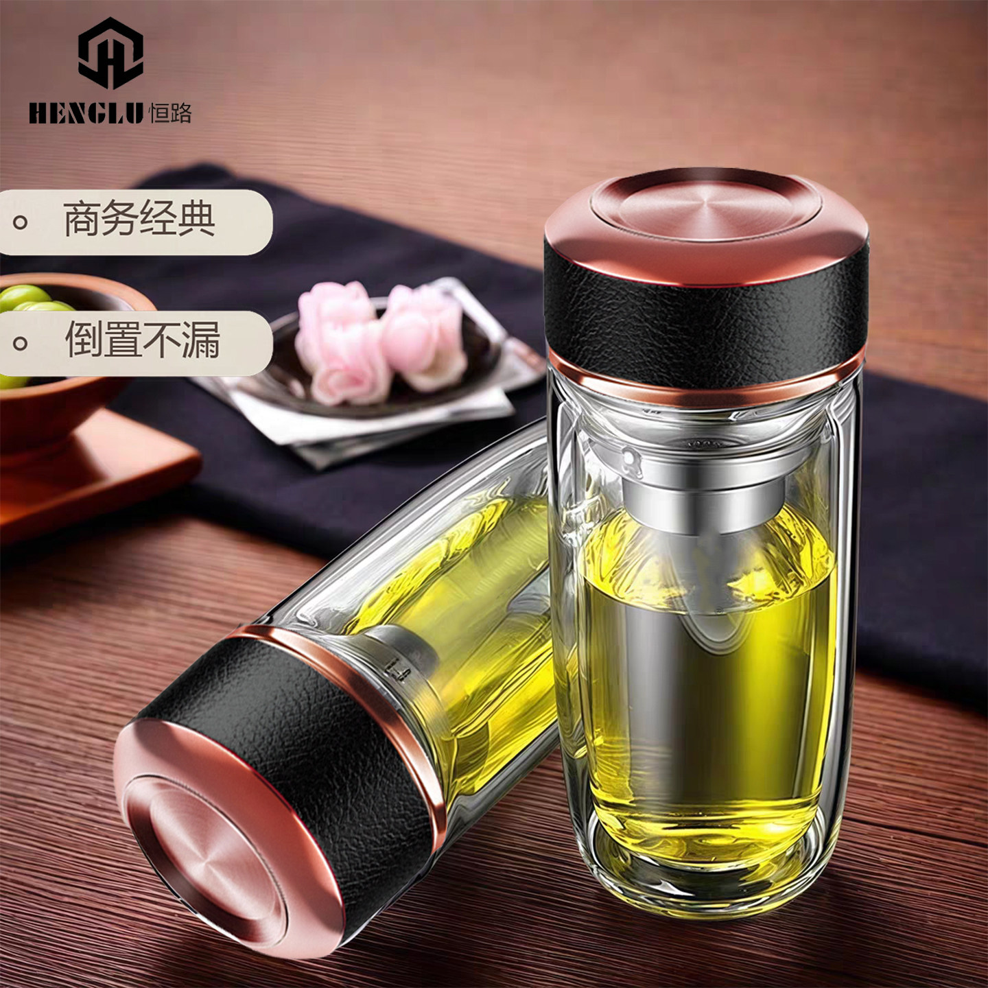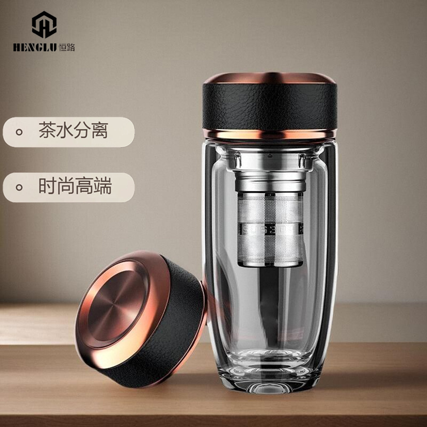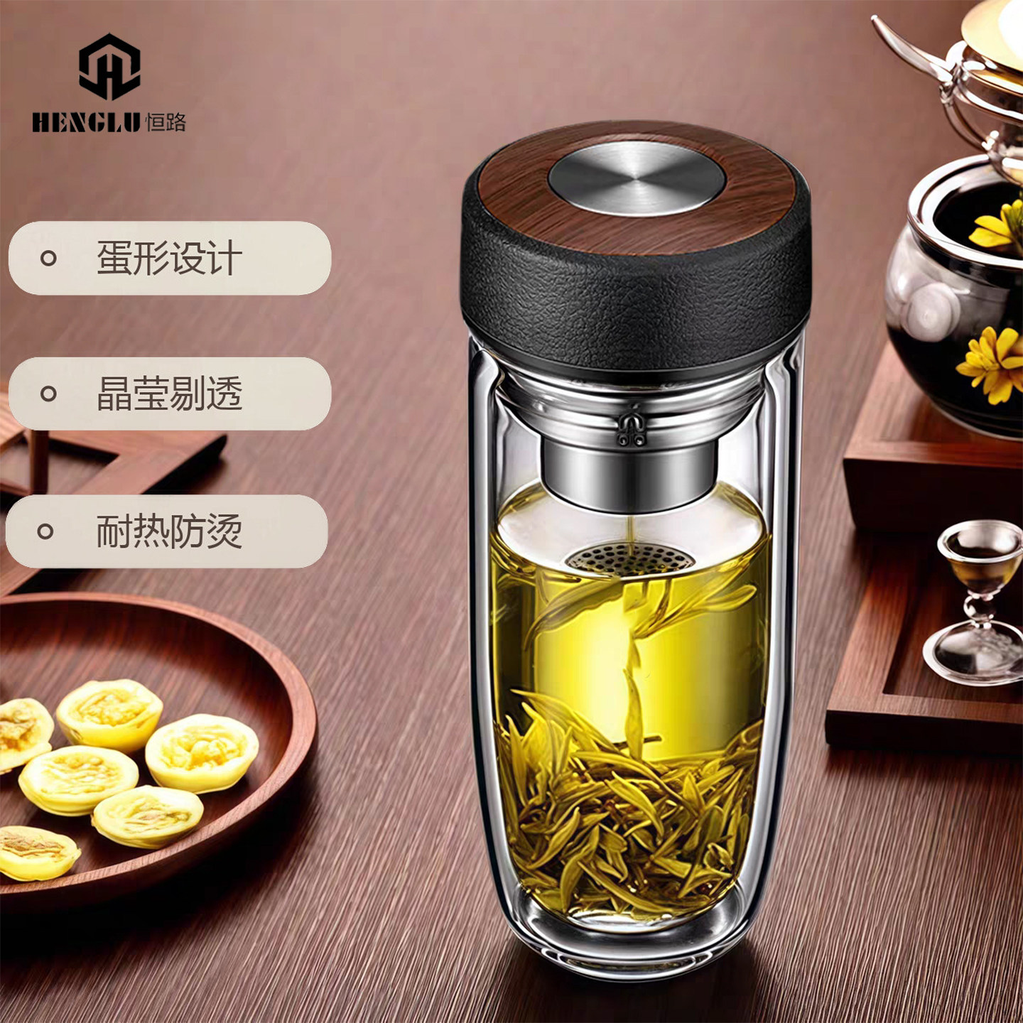 鹅蛋杯双层玻璃杯高档车载商用防爆礼品杯耐热高硼硅茶水分离茶杯