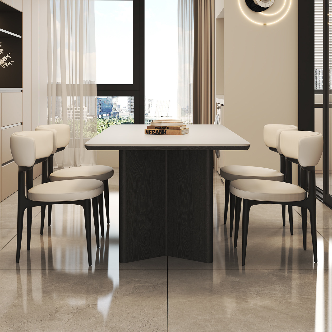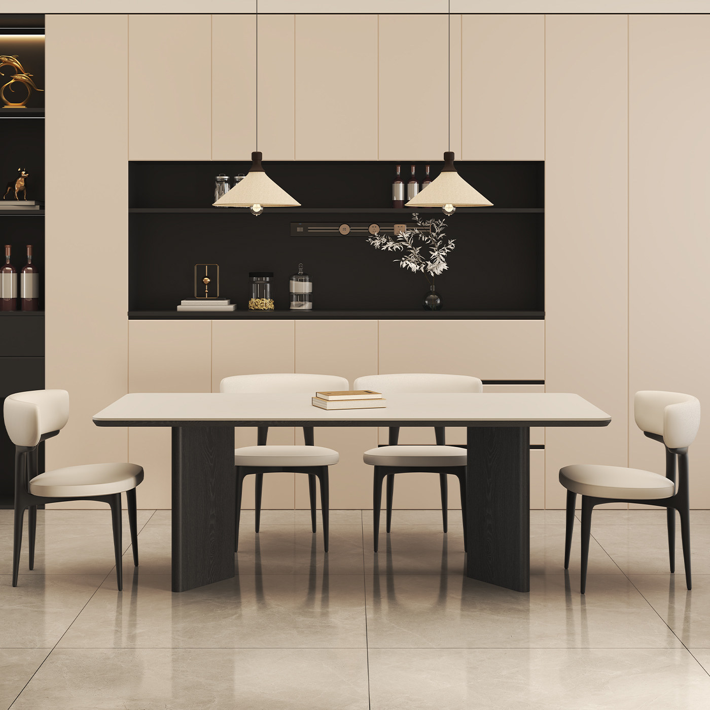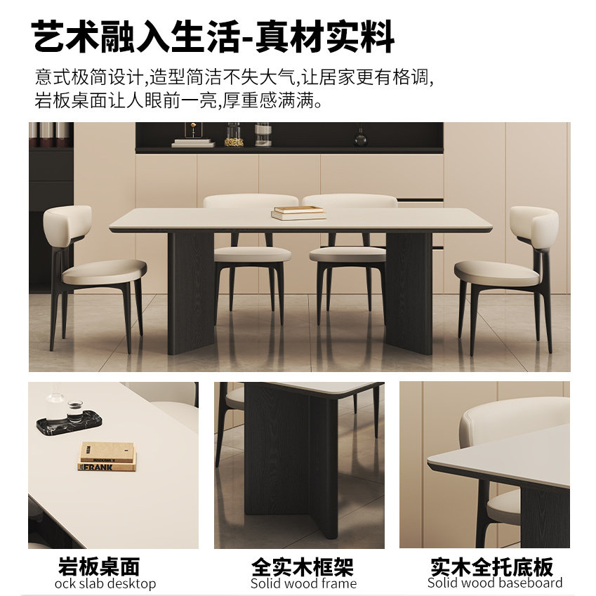 轻奢意式极简小户型长方形家用现代简约风岩板餐桌椅组合吃饭桌子
