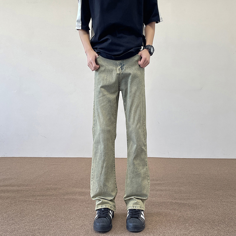 青少年加长裤子男高个子牛仔裤修身窄版潮流美式高街cleanfit黄泥