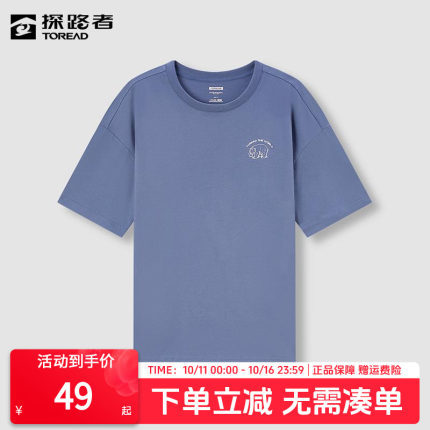 探路者短袖春夏季男女同款户外运动吸汗纯棉舒适休闲圆领T恤