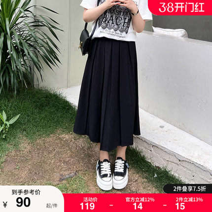 大码女装胖mm显瘦压皱西装A字中长裙半身裙气质休闲2023夏季新款