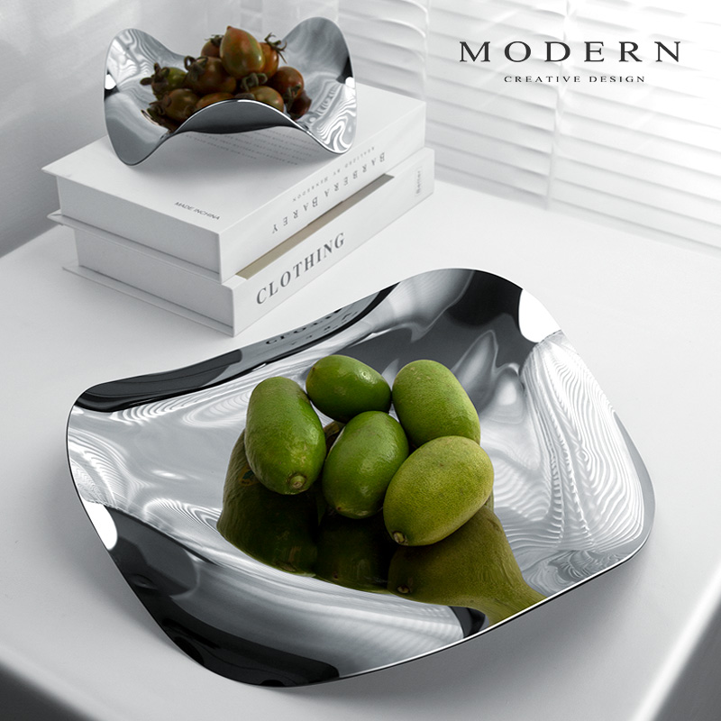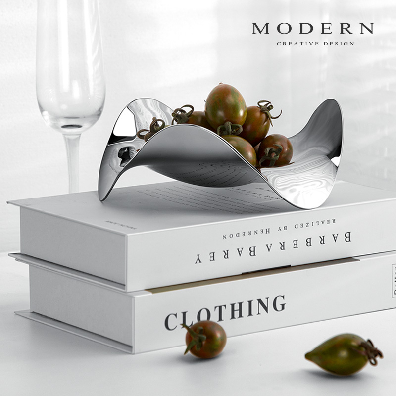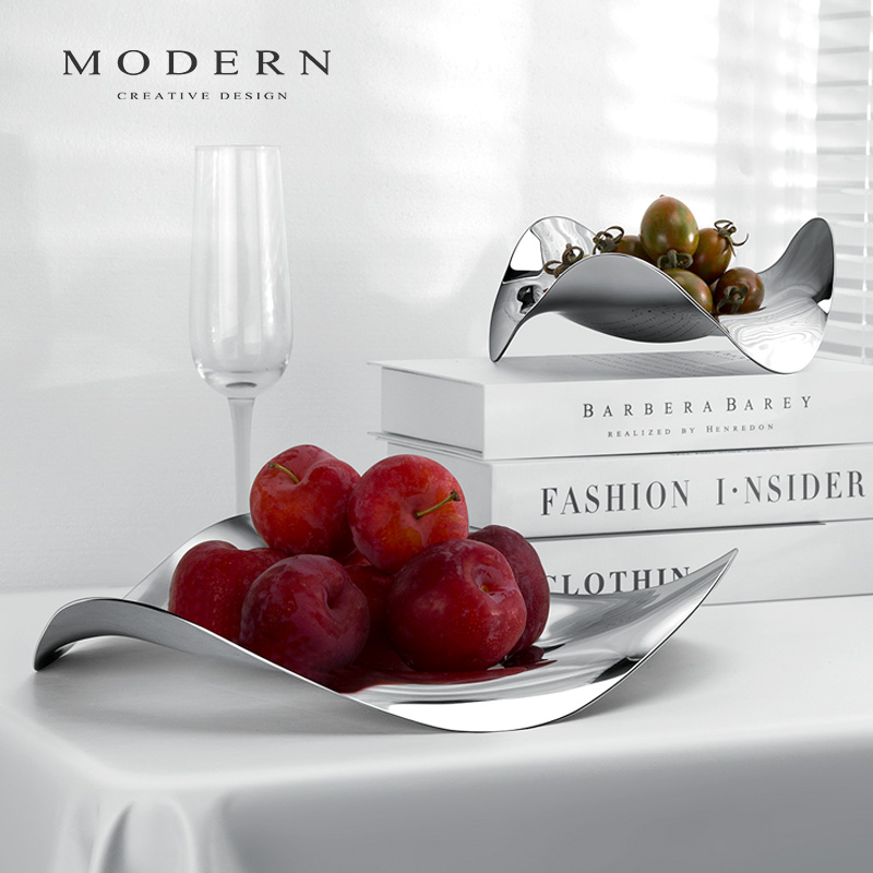 摩登MODERN欧式现代创意不锈钢干水果盘碟轻奢风家居客厅茶几摆件