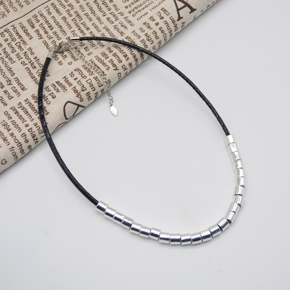 转运圈金属串珠女皮绳复古项链