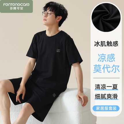 莫代尔短袖男款睡衣夏季男士大码男生可外穿棉绸家居服夏天青少年