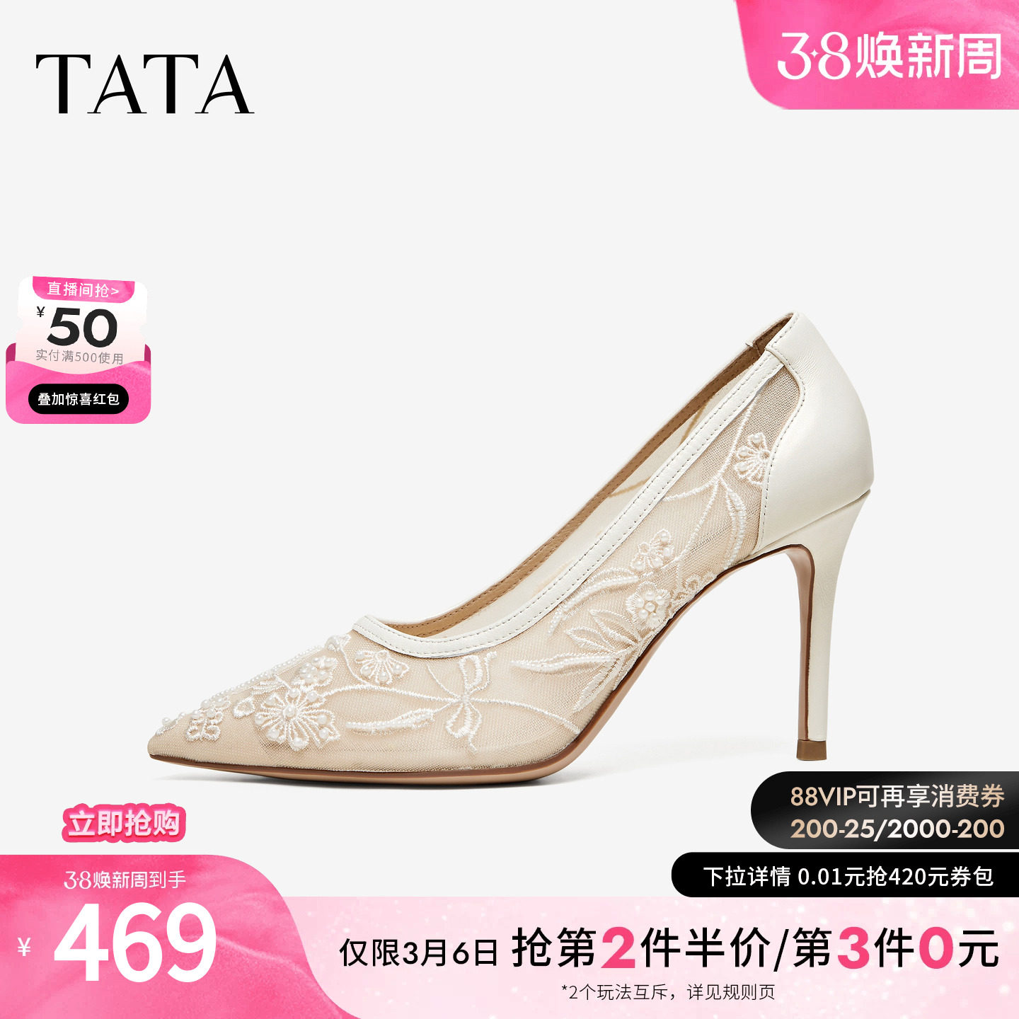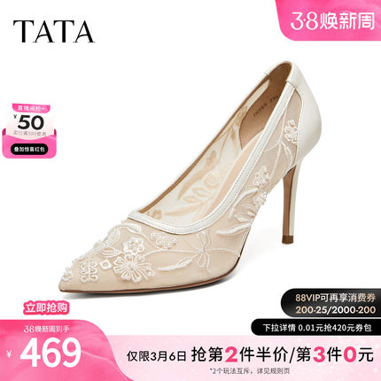 TATA他她女鞋2026春季新款浅口单鞋时尚婚鞋尖头细高跟鞋7RYE5AQ6