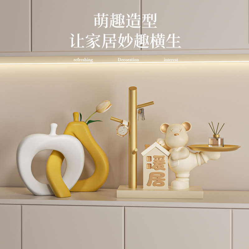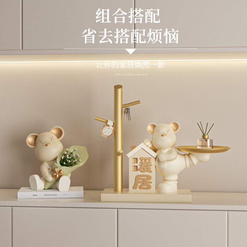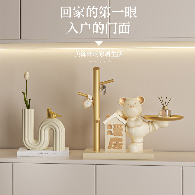暖居入户玄关钥匙收纳摆件暴力熊奶油风客厅搬新家乔迁新居装饰品