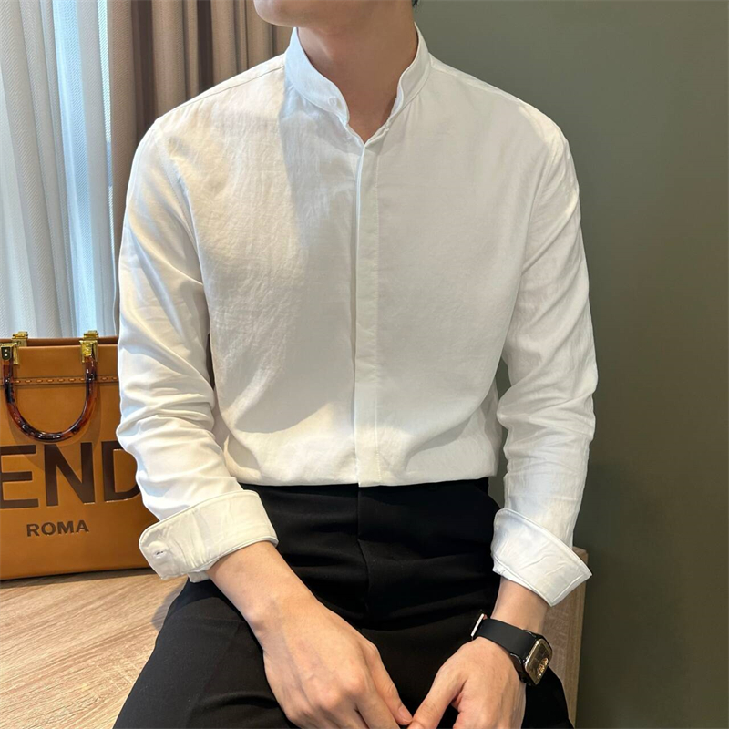 NR先生立领长袖休闲纯色男衬衫