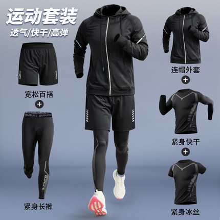 健身衣服男秋季跑步运动套装晨跑装备骑行服训练房紧身速干衣冰丝