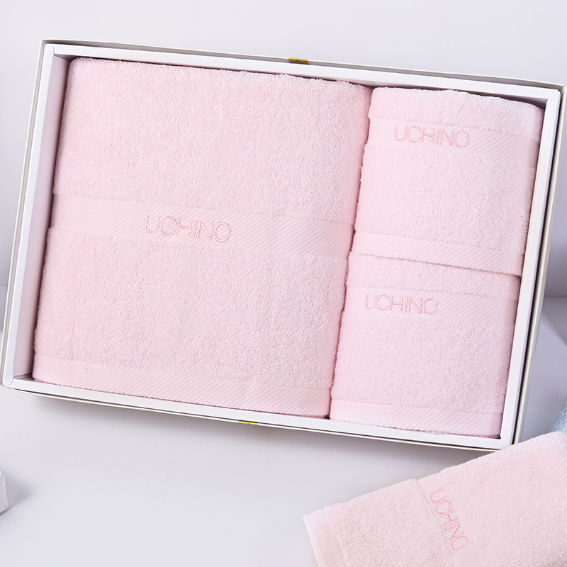 内野素色绣字纯棉毛巾浴巾三件套礼盒家用男女结婚伴手礼实用礼物