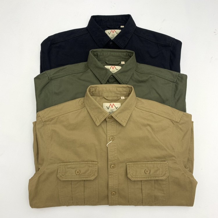 阿美咔叽日系复古工装衬衫男全棉秋季长袖休闲加大码宽松港风衬衣