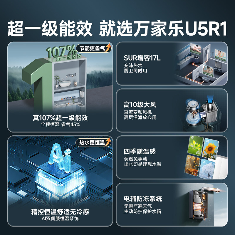 以旧换新补贴万家乐节能王天然气一级能效恒温家用燃气热水器U5R1