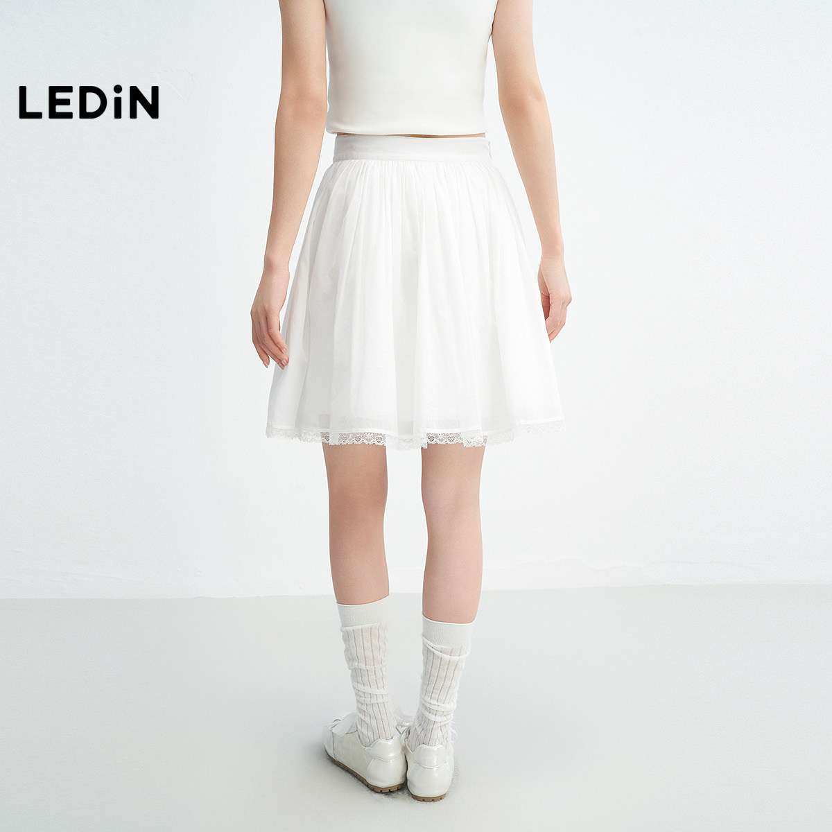 乐町芭蕾风小白裙短裙女装25年夏季新款蕾丝边双层裙摆打卡半身裙