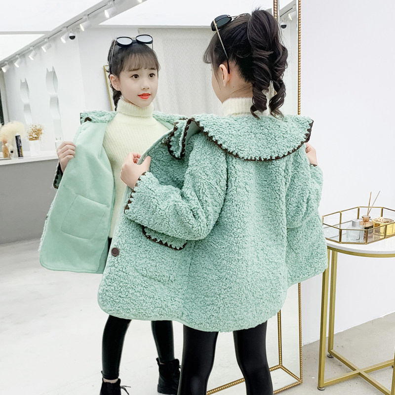 女童外套秋冬季洋气中长款毛毛衣