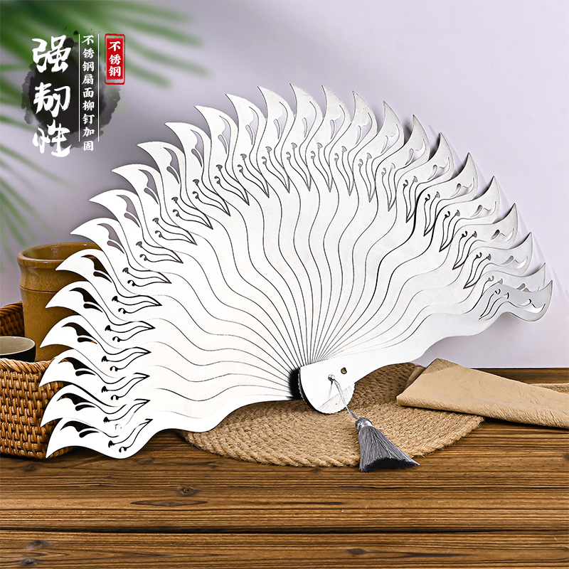 新中式精钢古风扇镂空铁扇防身功夫太极便携成人金属不锈钢折扇