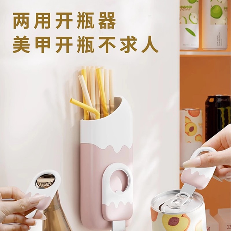 磁吸多功能收纳盒冰箱磁性贴装饰多功能两用开瓶器壁挂式收纳吸管