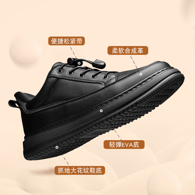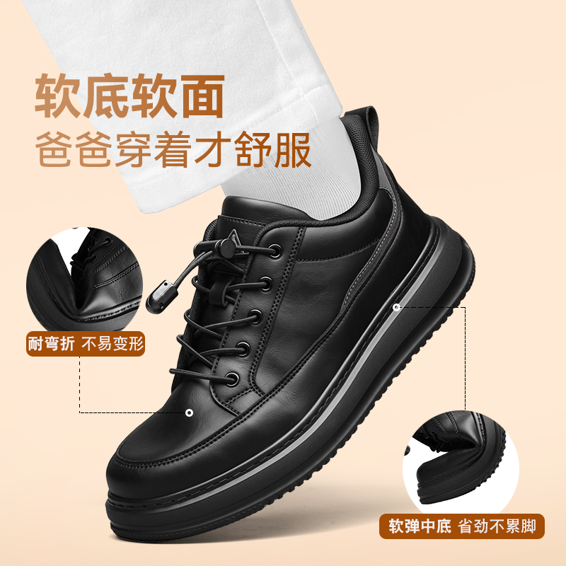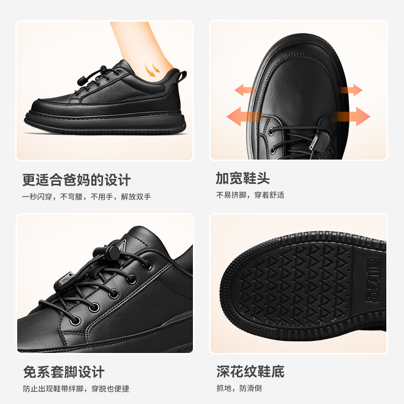 足力健老人鞋男款秋冬季休闲小皮鞋男运动健步鞋防滑中老年爸爸鞋