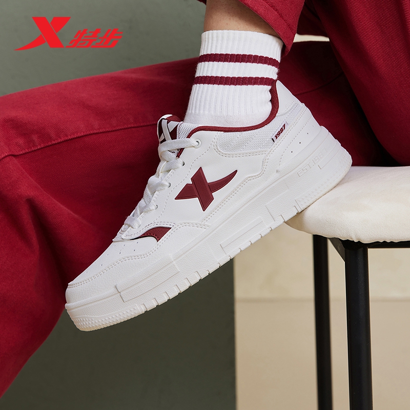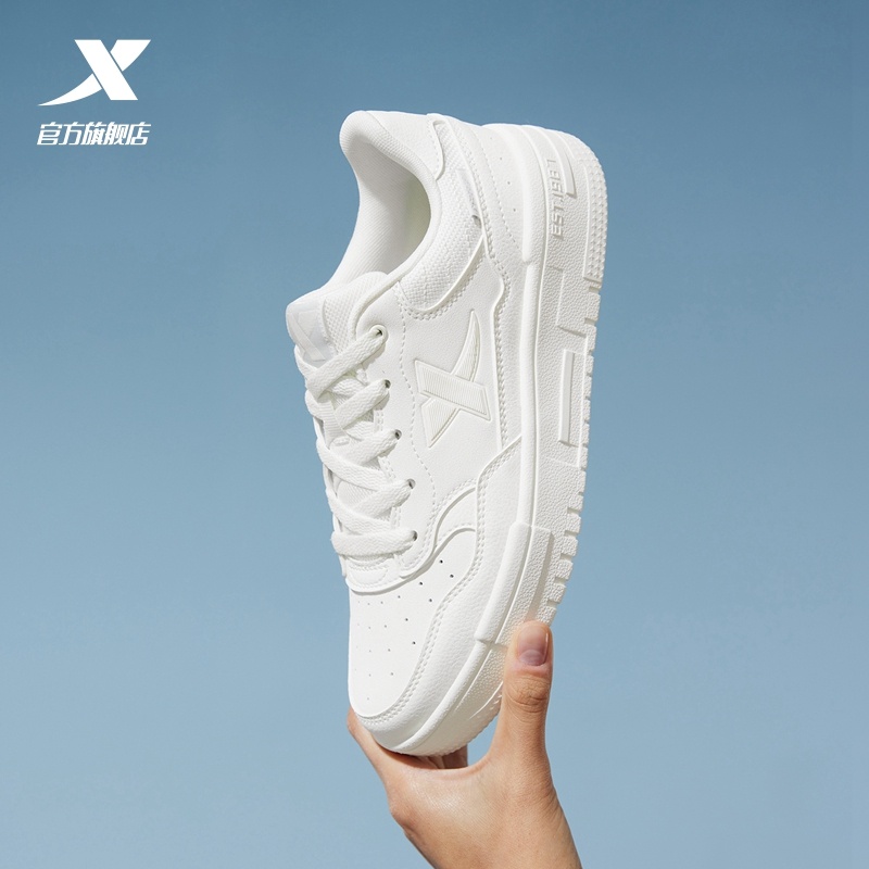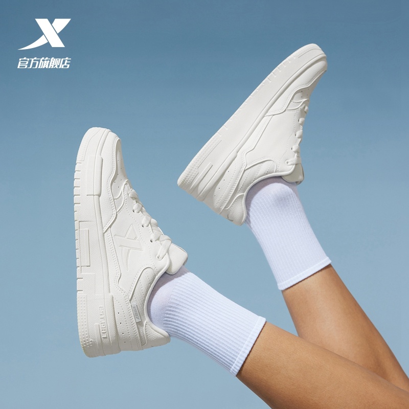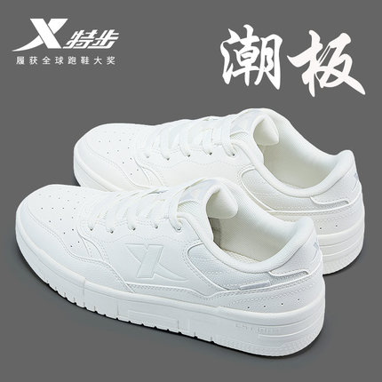 特步女鞋2025新款空军一号板鞋夏季透气学生休闲小白鞋厚底运动鞋