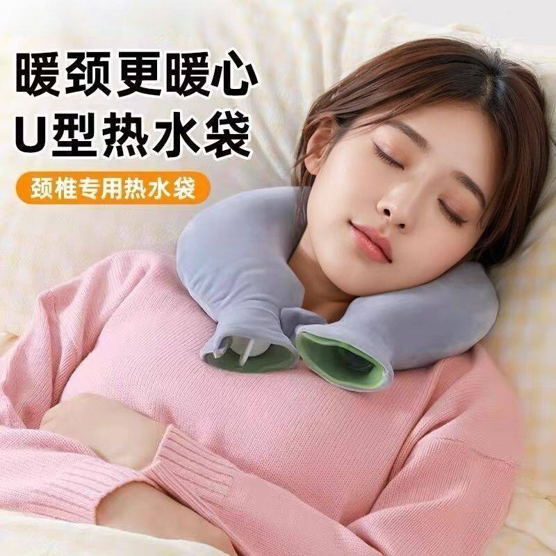 热水袋U型颈椎热敷注水灌水肩颈头部暖宝宝防爆加厚挂脖围脖枕头