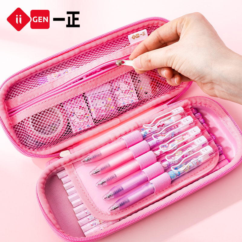 iiGEN一正创意库洛米点钻贴纸笔盒大容量EVA笔盒 手工DIY可爱小学生文具盒女生笔袋开学儿童文具双层学生笔盒
