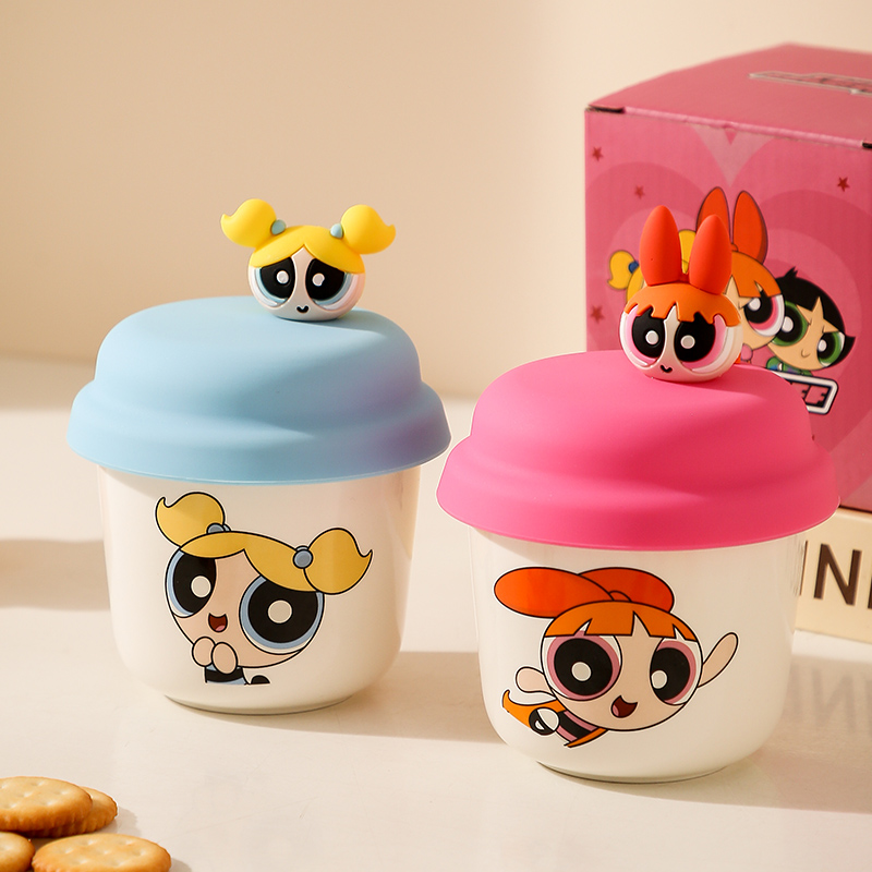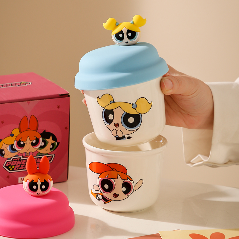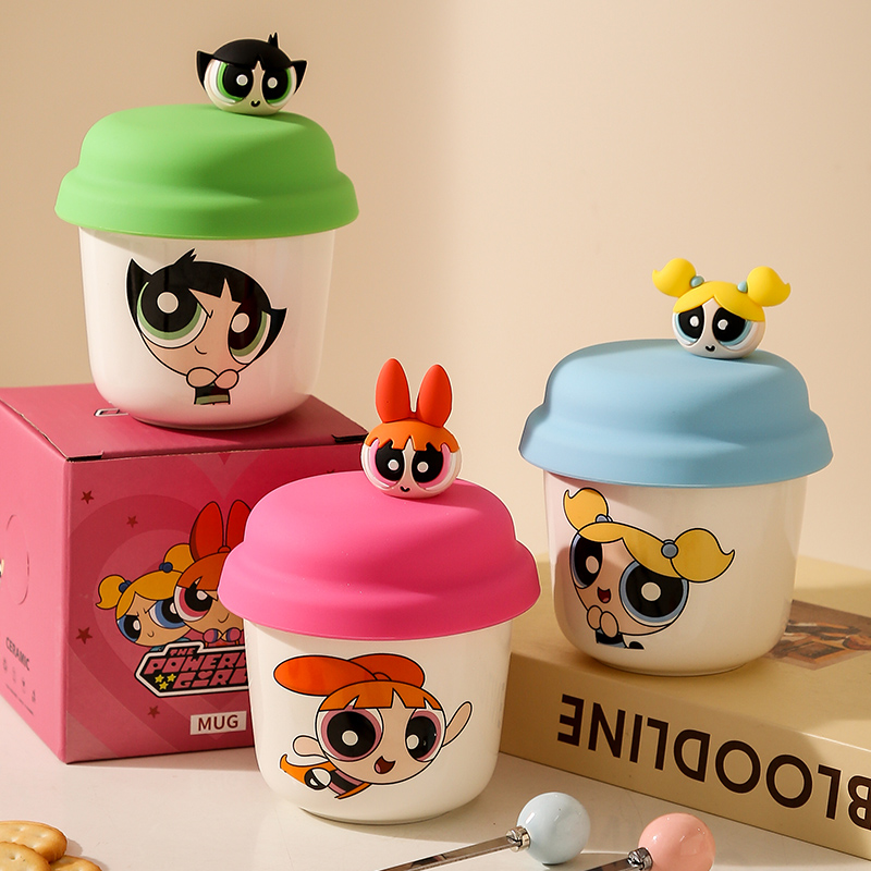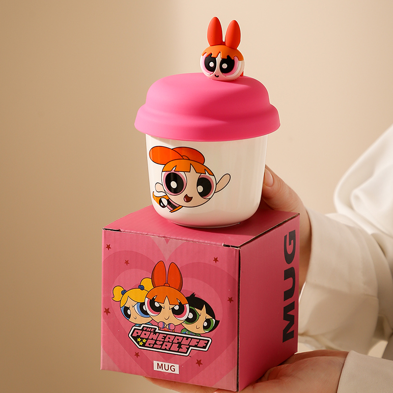 飞天小女警手握咖啡杯子高颜值陶瓷马克杯家用带盖水杯女生拿铁杯