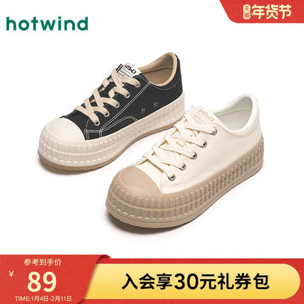 热风厚底帆布鞋女2025年秋季新款百搭休闲鞋学院风女鞋H14W25128