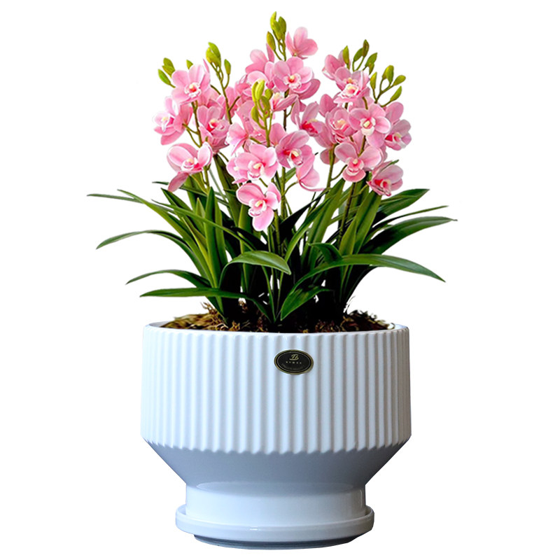 花盆陶瓷特大亚光新款竖纹高脚阳台客厅摆件绿植绿萝蝴蝶兰花盆栽