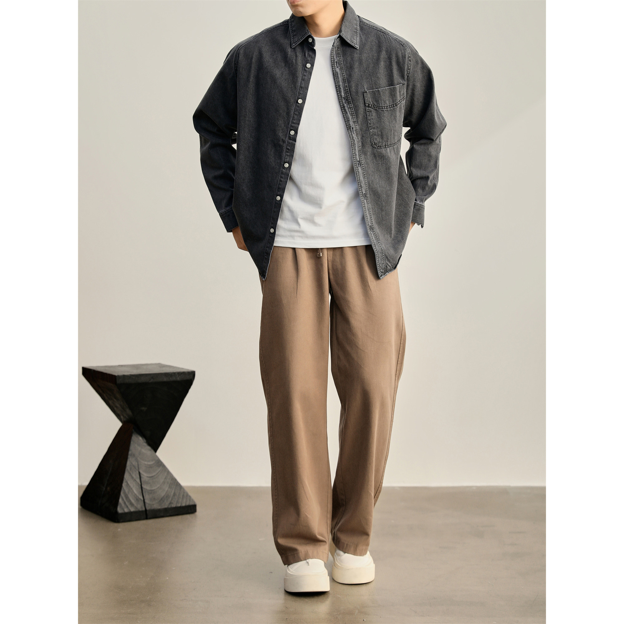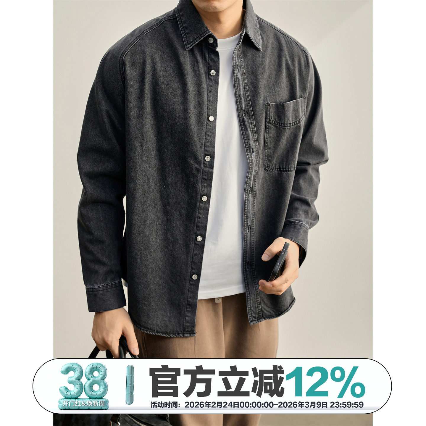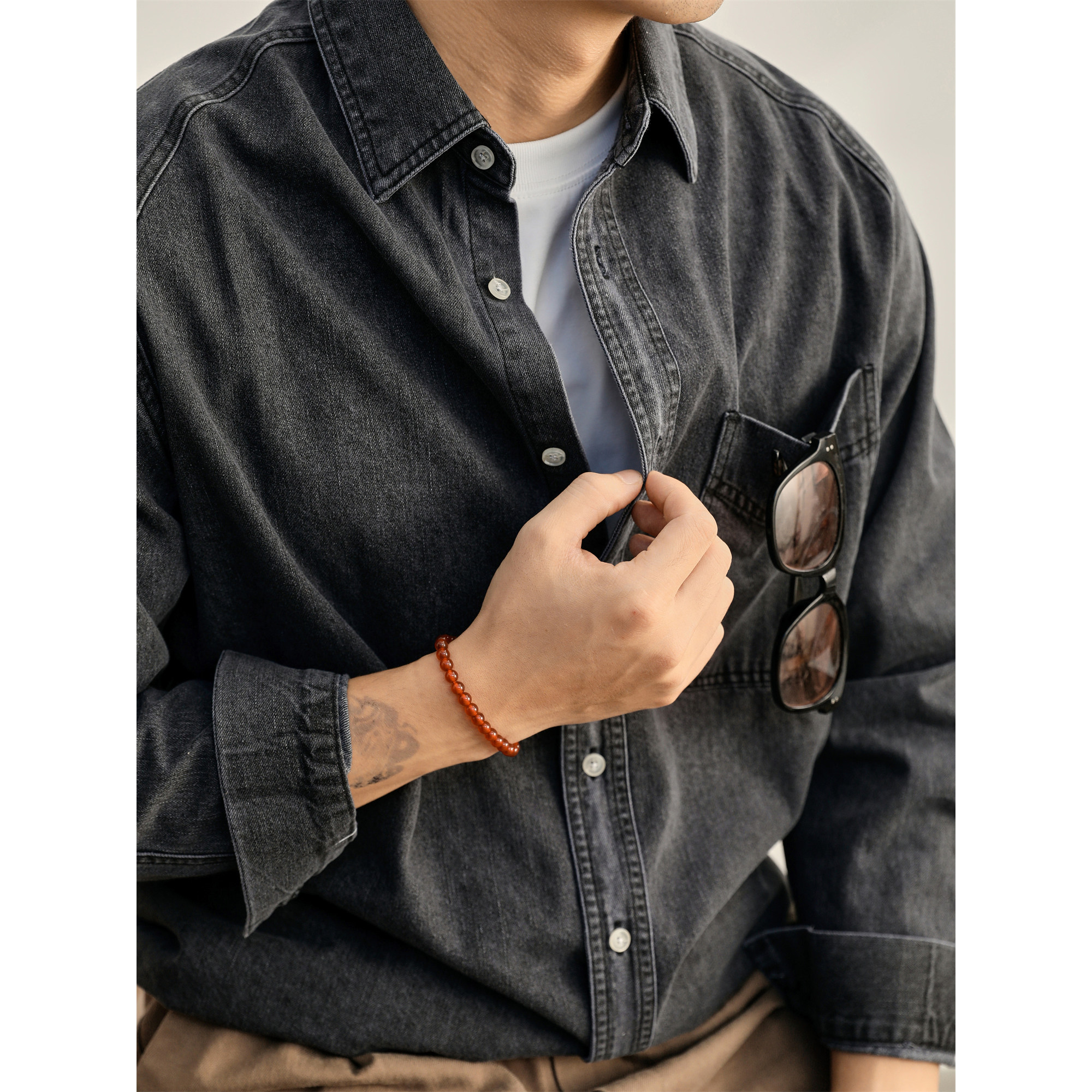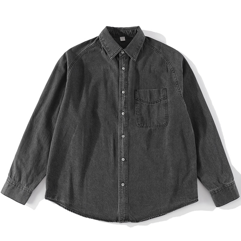 特价 重磅280g怀旧水洗棉牛仔衬衫男士辑明线口袋工装插肩袖外套