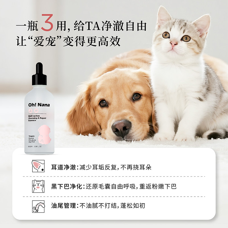 OhNana三效洁净修护小滴管 · 猫犬用 耳螨黑下巴油尾巴 洁耳液
