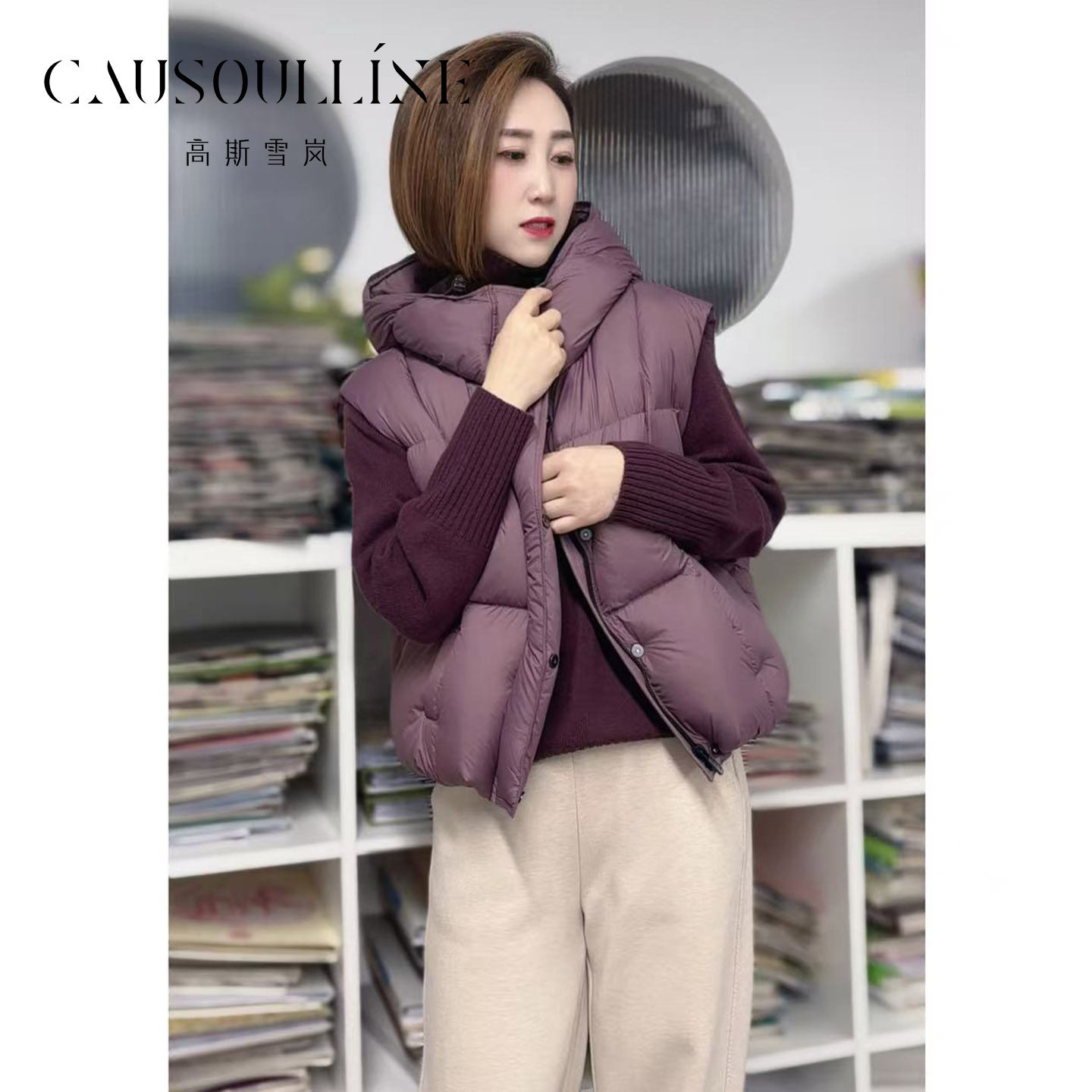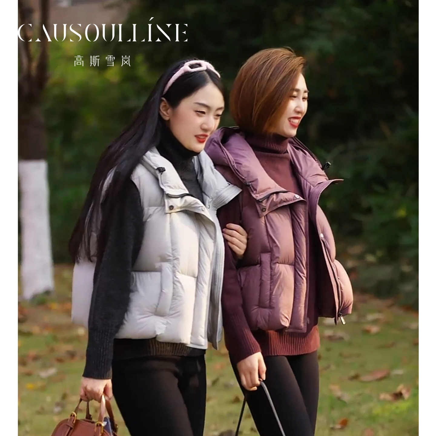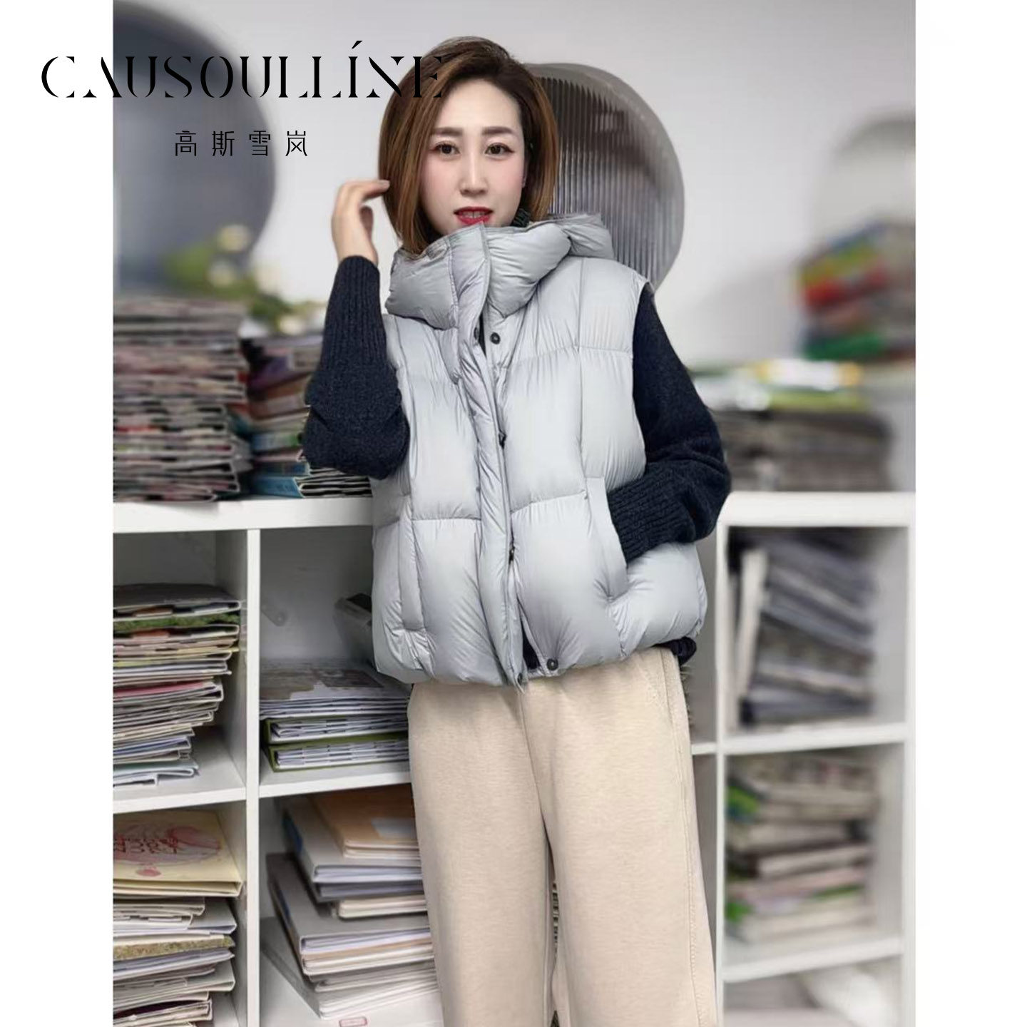 高斯雪岚90白鸭绒羽绒马甲女短款立领加厚无袖外套泡泡服25480048