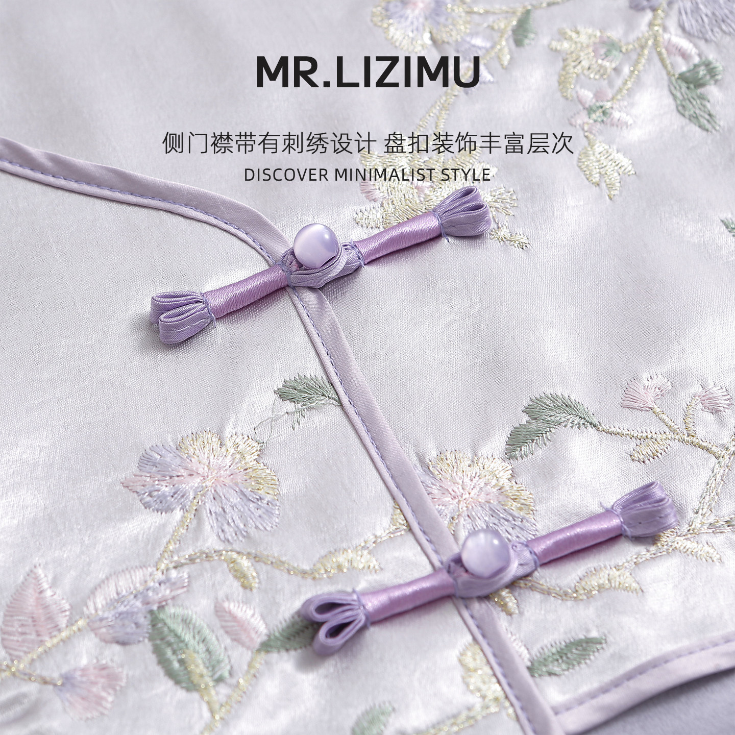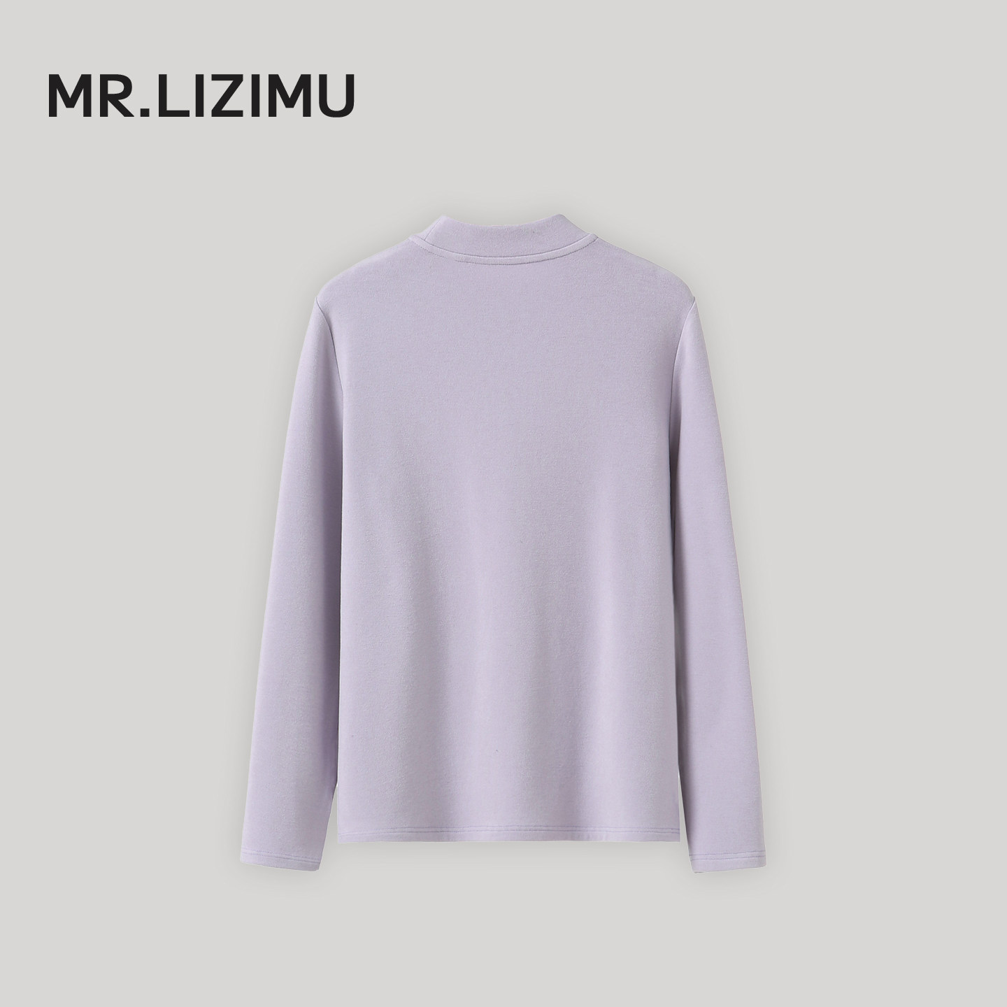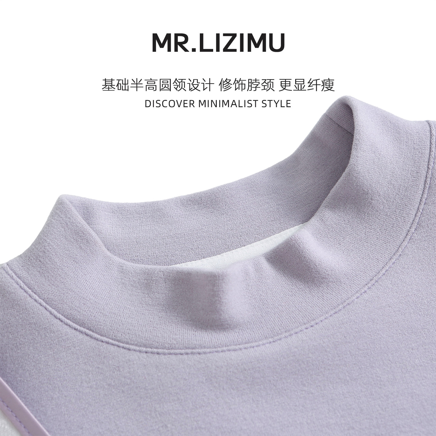 李子木国风半高领加绒T恤女冬季休闲叠穿刺绣马甲假两件打底上衣